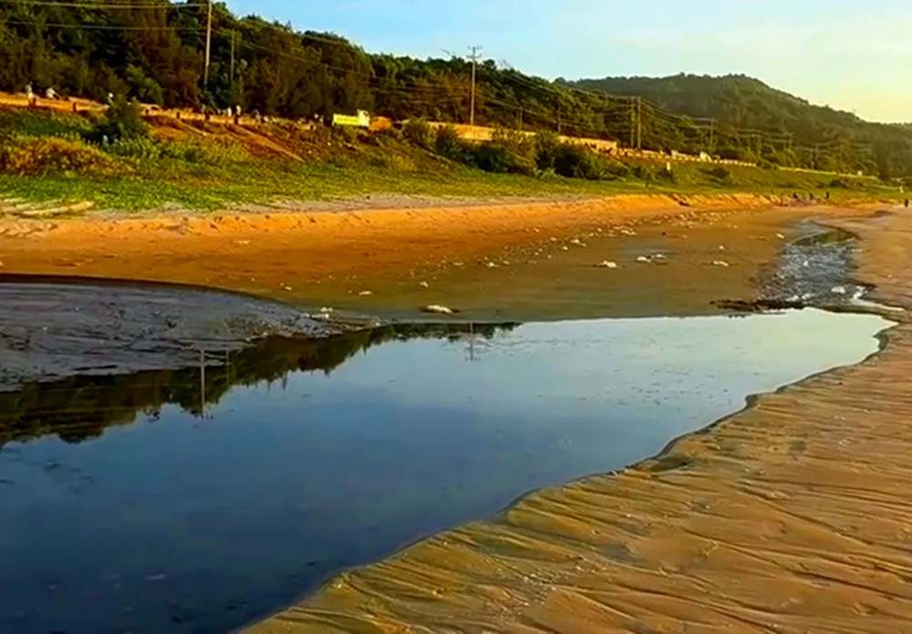 Nước thải xả ra biển bị người dân chụp ảnh, quay lại.