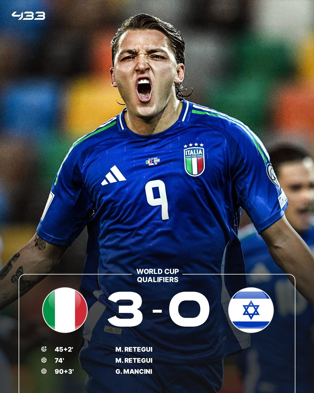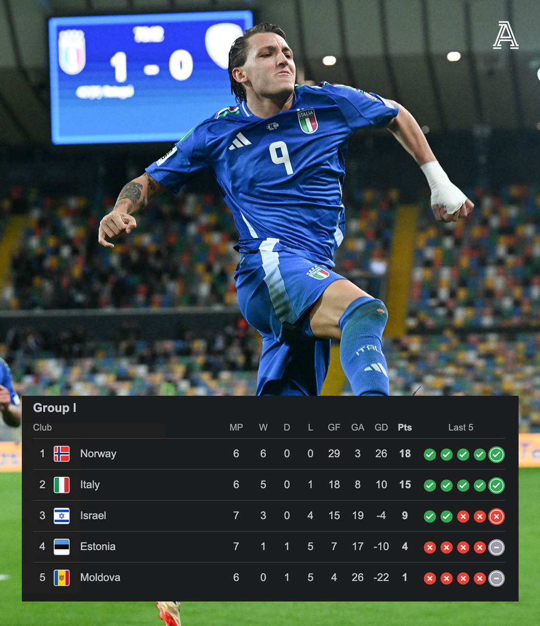 Italia rút ngắn khoảng cách với đội đầu bảng Na Uy xuống còn 3 điểm