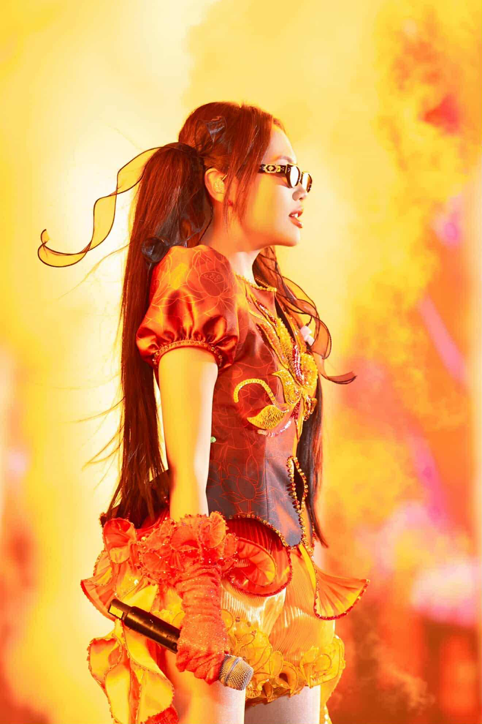 Trong một khoảnh khắc được chia sẻ, Phương Mỹ Chi diện trang phục đỏ - cam rực lửa, mái tóc buộc cao cùng biểu cảm mạnh mẽ trên sân khấu. Tông màu nóng kết hợp ánh sáng biểu diễn khiến hình ảnh của cô như "bốc cháy", đầy năng lượng và tự tin. Chính vì vậy, cư dân mạng không ngần ngại gọi đây là bức ảnh "nóng hơn lửa" của Phương Mỹ Chi, theo nghĩa khen ngợi cho màn xuất hiện ấn tượng của cô.