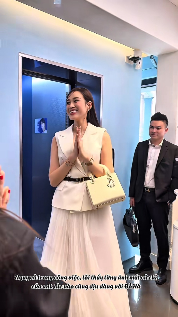 Mới đây, cư dân mạng tiếp tục “đào lại” một đoạn video trước thời điểm Đỗ Thị Hà và chồng kết hôn, ghi lại những khoảnh khắc ngọt ngào của cặp đôi. Trong đoạn clip, Viết Vương liên tục nhìn vợ bằng ánh mắt đong đầy tình cảm, còn Đỗ Thị Hà cũng không giấu được vẻ hạnh phúc. Dù chỉ ngồi cạnh nhau trong một căn phòng làm việc, cả hai vẫn thể hiện sự gắn bó và quan tâm tinh tế dành cho đối phương.