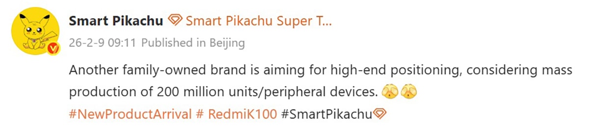 Thông tin từ leaker nổi tiếng Smart Pikachu tiết lộ rằng một dòng sản phẩm phụ của Xiaomi đang phát triển thiết bị mới sở hữu camera 200MP đi kèm ống kính tiềm vọng. Dựa trên các dữ liệu đi kèm, giới công nghệ xác định đây chính là dòng Redmi K100 dự kiến ra mắt trong năm 2026. Đây được xem là nỗ lực của Xiaomi nhằm phổ cập công nghệ nhiếp ảnh đỉnh cao xuống các dòng máy có mức giá dễ tiếp cận hơn.