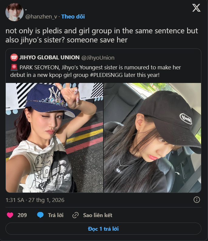 Chưa dừng lại ở đó, những ngày gần đây, mạng xã hội tiếp tục xôn xao trước tin đồn em gái út của Jihyo là Park Seoyeon đang chuẩn bị ra mắt với tư cách thành viên của một nhóm nhạc nữ trực thuộc Pledis Entertainment. Dù phía công ty và gia đình chưa đưa ra bất kỳ xác nhận chính thức nào, thông tin này vẫn nhanh chóng lan truyền, kéo theo hàng loạt bình luận thể hiện sự tò mò và kỳ vọng.