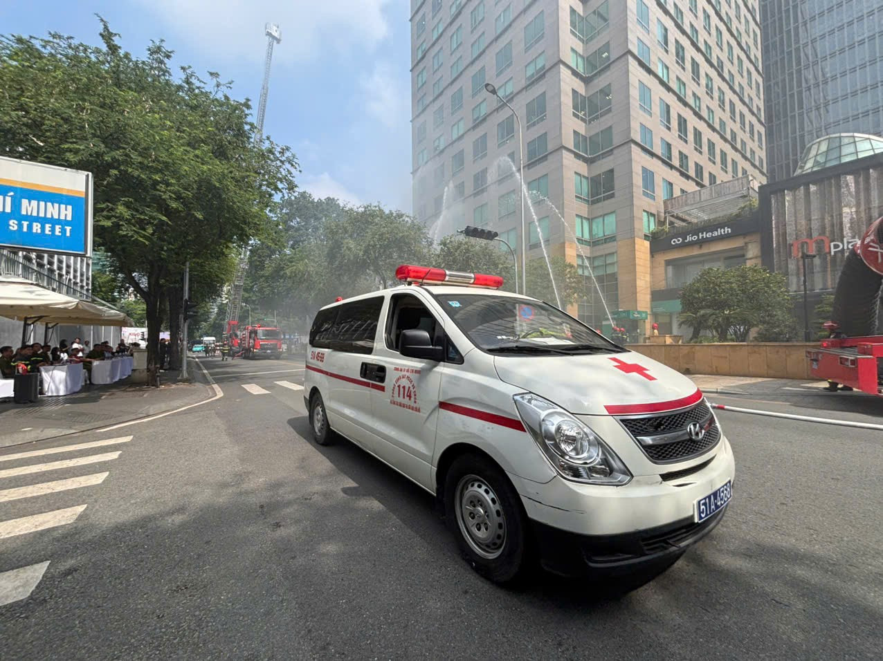 Sau khi nhận được tin báo qua tổng đài 114, Phòng PC07 – Công an TP.HCM đã điều động nhiều lực lượng chuyên nghiệp và phương tiện đến hiện trường, gồm 8 xe chữa cháy, xe thang 56m, xe robot chữa cháy tầng hầm, xe hút khói và xe cứu thương. Các chiến sĩ nhanh chóng thiết lập trung tâm chỉ huy dã chiến, triển khai đội hình phun foam, hút khói, đồng thời tìm kiếm và cứu 10 nạn nhân giả định bị mắc kẹt.
