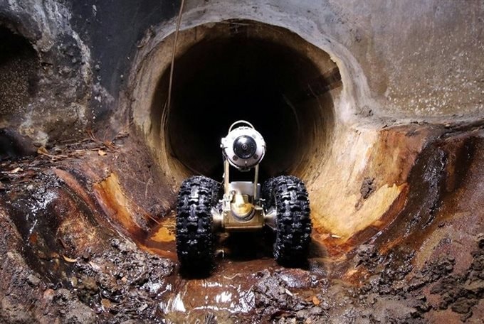Robot vào kiểm tra, phát hiện hư hỏng ở cống thoát nước-Ảnh: UDC