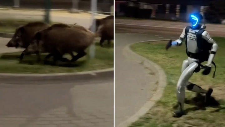 Hình ảnh robot hình người đuổi lợn rừng đang gây sốt
