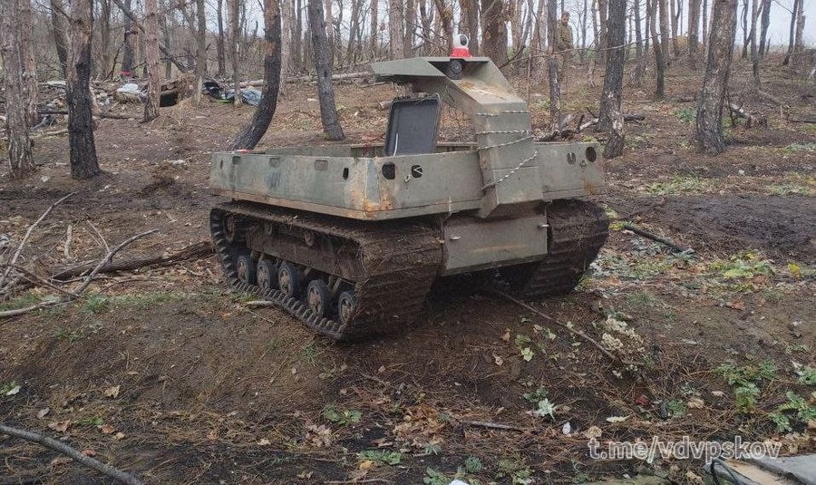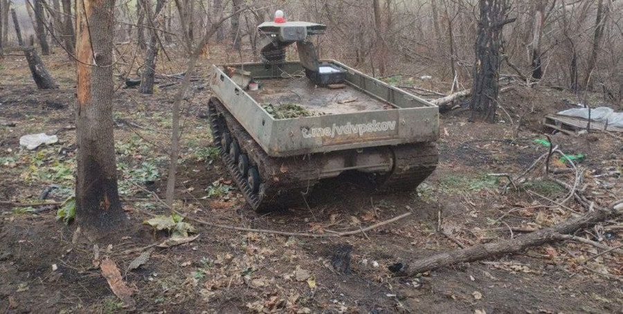 Hình ảnh lan truyền trên mạng xã hội cho thấy một nền tảng robot mặt đất (UGV) điều khiển từ xa được sử dụng gần khu vực giao tranh, theo báo cáo của tài khoản @TheDeadDistrict trên X. Các đặc điểm quan sát được—bố cục thân xe, khung gầm bánh xích và vị trí lắp khí tài—được một số nguồn phân tích nhận định trùng khớp với tổ hợp robot Omych từng xuất hiện trong truyền thông Nga.