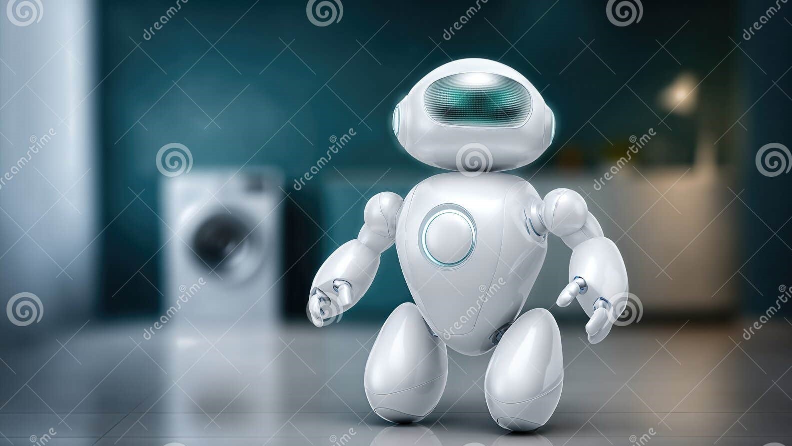 Robot trợ lý gia đình hiện đại trong môi trường nhà ở sang trọng giúp đỡ việc nhà và các công việc hàng ngày. Một robot trợ lý gia đình đặt trong một ngôi nhà hiện đại, sẵn sàng hỗ trợ dọn dẹp và sắp xếp trong không gian bếp gọn gàng. Được tạo ra bởi trí tuệ nhân tạo (AI). Ảnh: dreamstime.com
