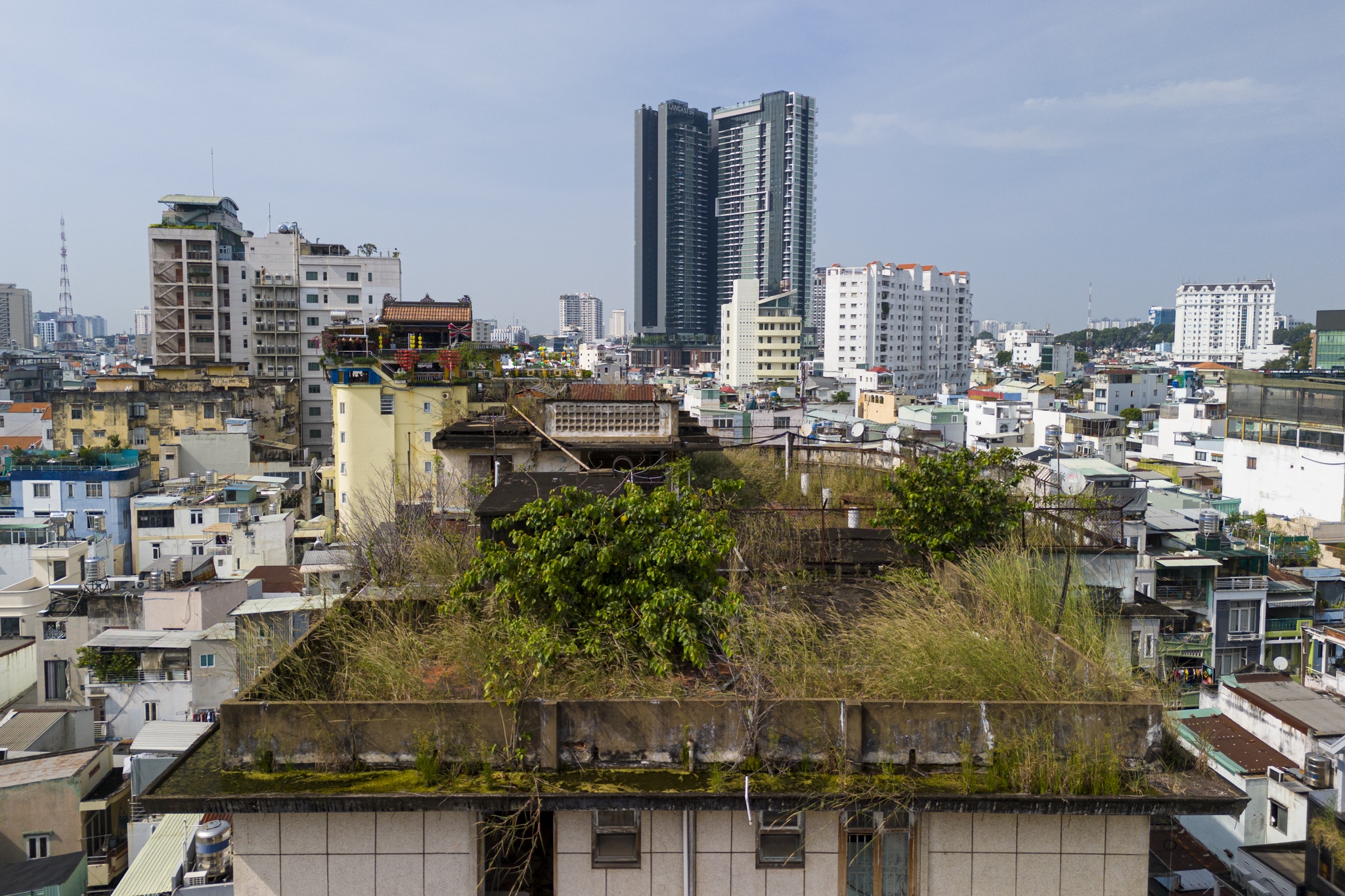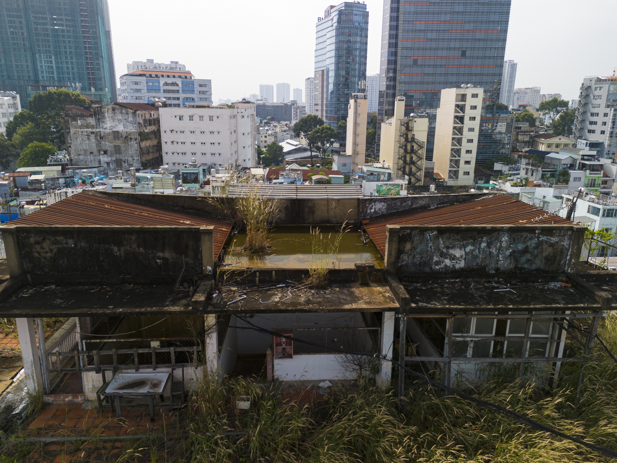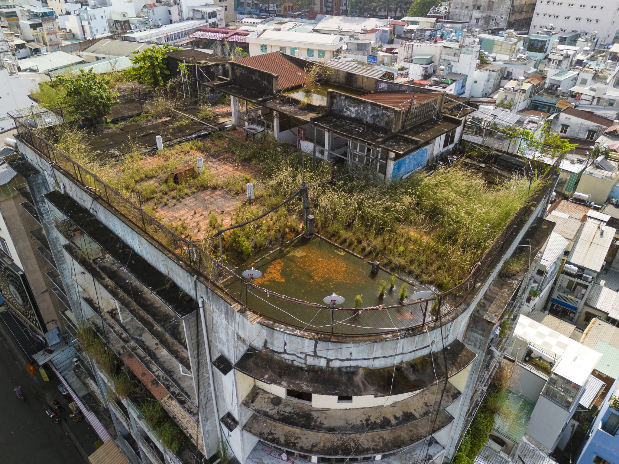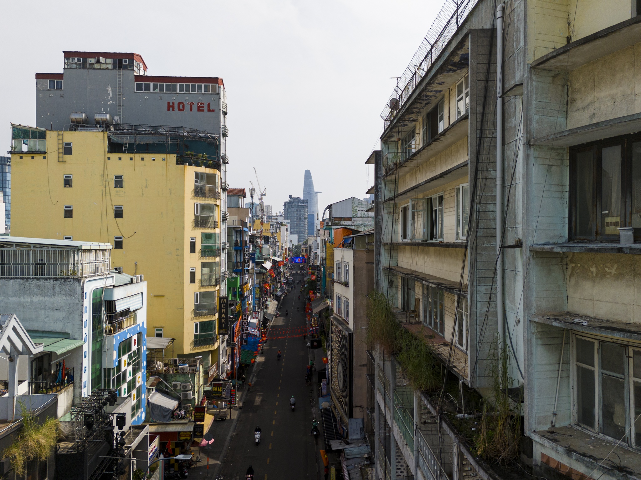 Nằm giữa "phố Tây", tòa chung cư cũ tại số 155-157 Bùi Viện (phường Bến Thành, TP.HCM) được người dân xung quanh gọi là chung cư bỏ hoang vì toàn bộ hộ dân sống ở đó đã di dời. Công trình cũng chờ được xây mới nhiều năm nay.