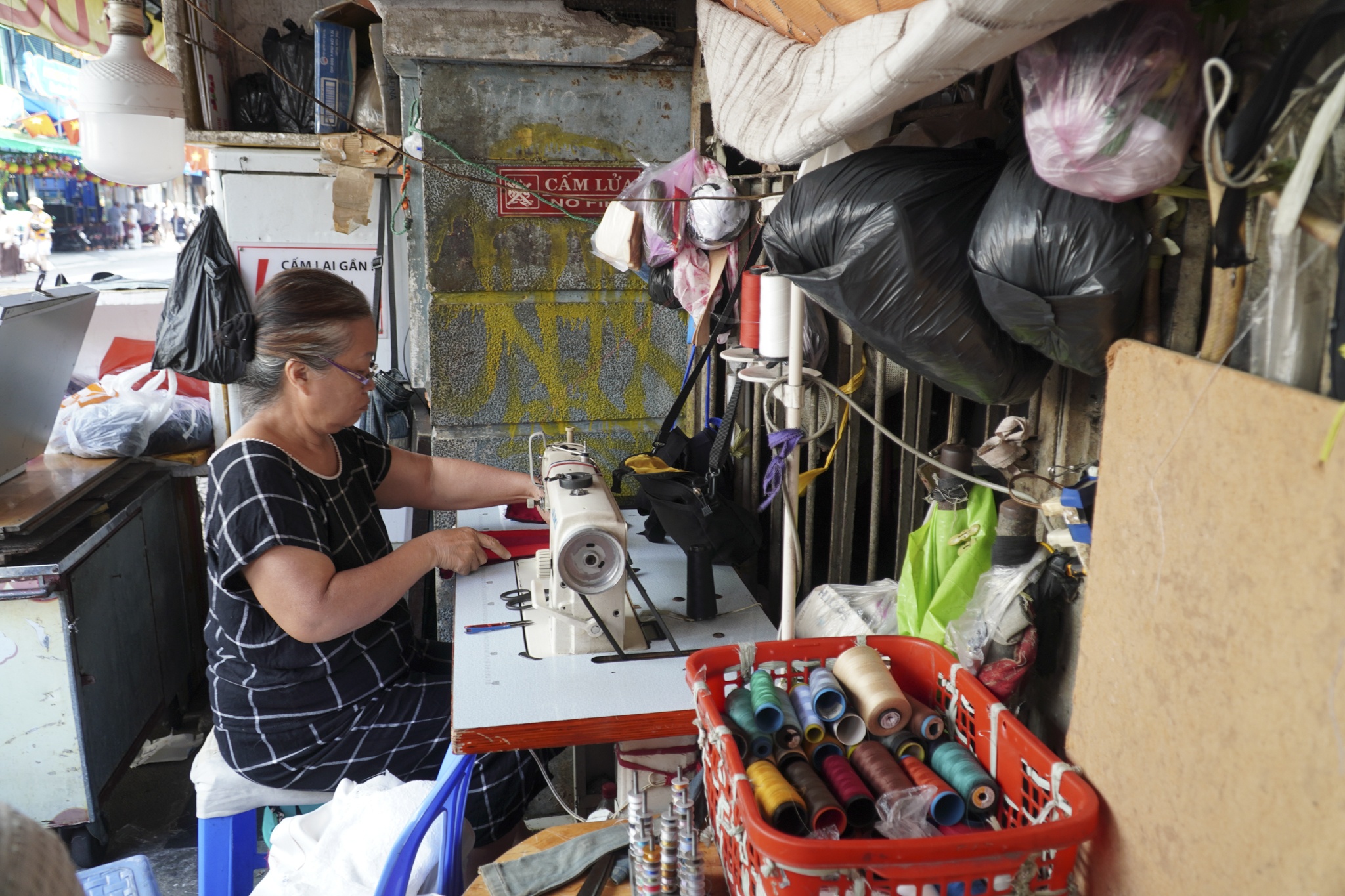 Bà Nguyễn Thị Hảo (61 tuổi), hiện cũng sống tại 90 Nguyễn Hữu Cảnh cùng con cháu. Bà gắn bó với chung cư Bùi Viện từ năm 1984 đến nay, và cũng từng ấy năm bà kiếm sống bằng nghề sửa đồ.