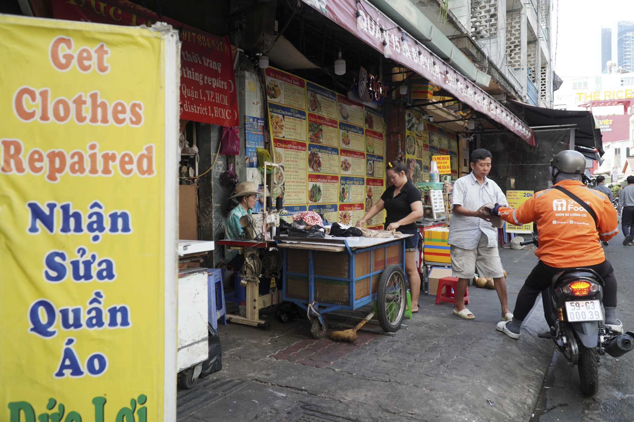 Vợ chồng bà Nguyễn Thị Trang (55 tuổi) sống tại chung cư này từ năm 1996, hiện cùng 3 thành viên khác tạm trú tại nhà tái định cư ở số 90 Nguyễn Hữu Cảnh. "Trước đây, vợ chồng tôi mở tiệm sửa quần áo ngay trong chung cư. Sau khi phải di dời để thành phố triển khai tháo dỡ, xây mới, chúng tôi cùng cô Hảo mở tiệm ngay phía dưới tòa nhà để tiếp tục mưu sinh", bà Trang kể.