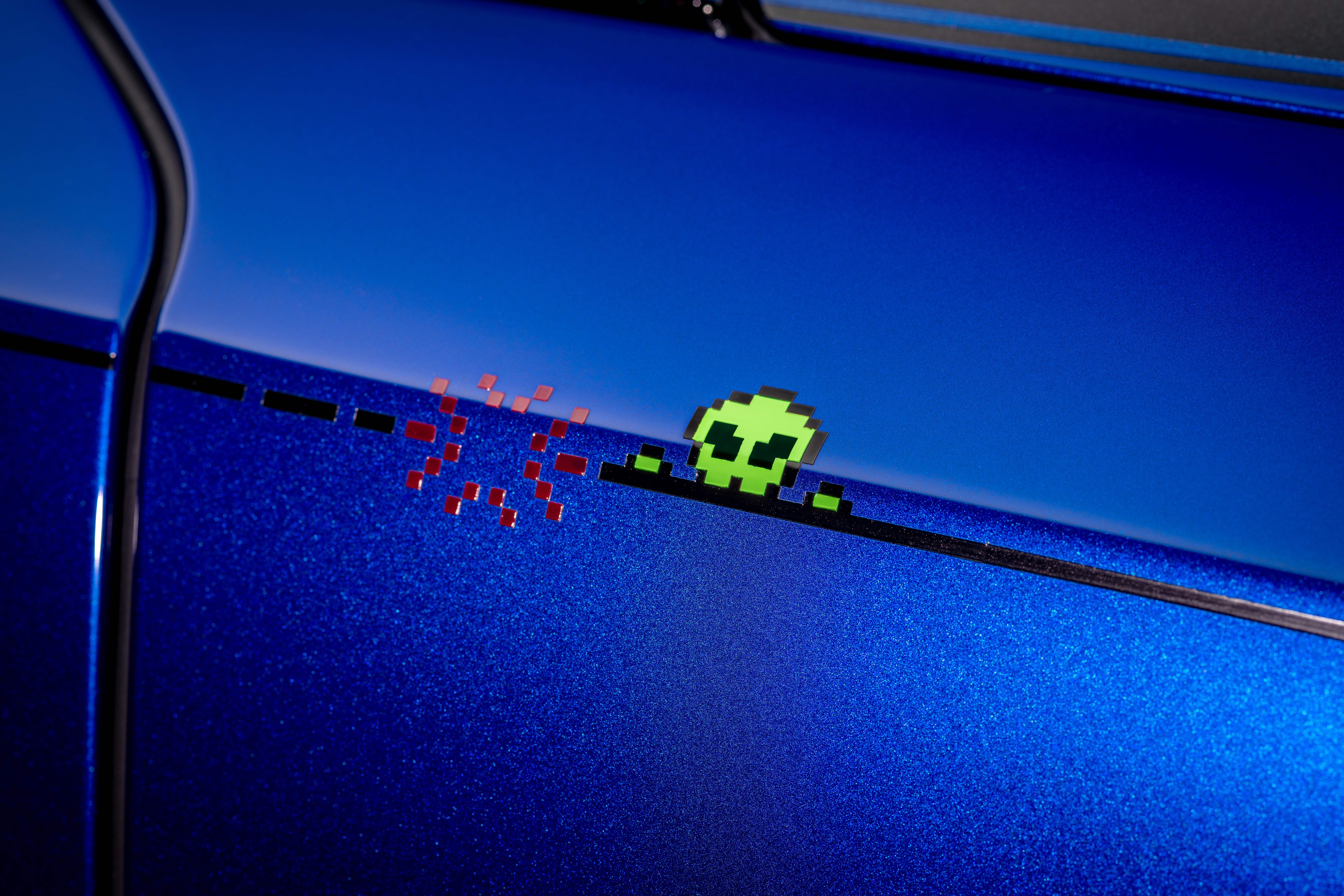 Bước vào khoang nội thất, phong cách retro của chiếc xe còn được thể hiện ở trần sao "Pixel Blaster" gồm 80 chiến hạm 8-bit, kết hợp hiệu ứng bắn tia laser sống động.