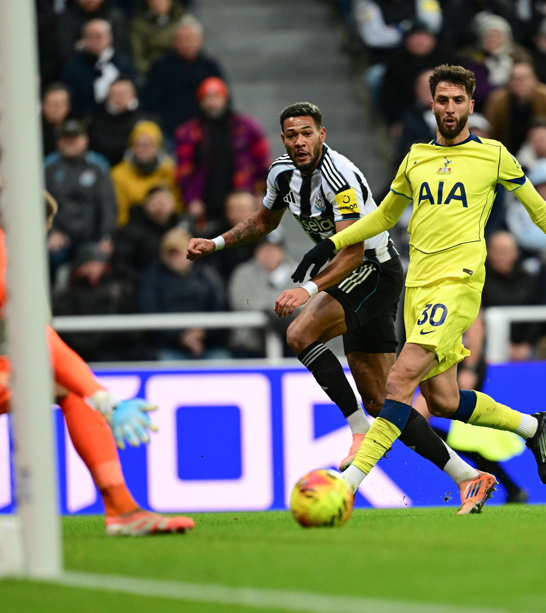 Phút 86, Bentancur phạm lỗi với Burn trong vòng cấm. Trọng tài cho Newcastle hưởng phạt đền sau khi xem VAR