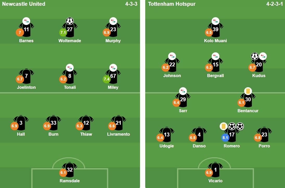 Trước khi hiệp hai trở nên sôi động, Newcastle đã hoàn toàn làm chủ thế trận trong 45 phút đầu tiên. Họ liên tục tạo ra sóng gió về phía khung thành Tottenham với các cơ hội của Lewis Hall, Lewis Miley, Joelinton và Jacob Murphy. Dù vậy, sự thiếu sắc bén trong khâu dứt điểm cuối cùng đã khiến đội chủ nhà không thể cụ thể hóa ưu thế.
