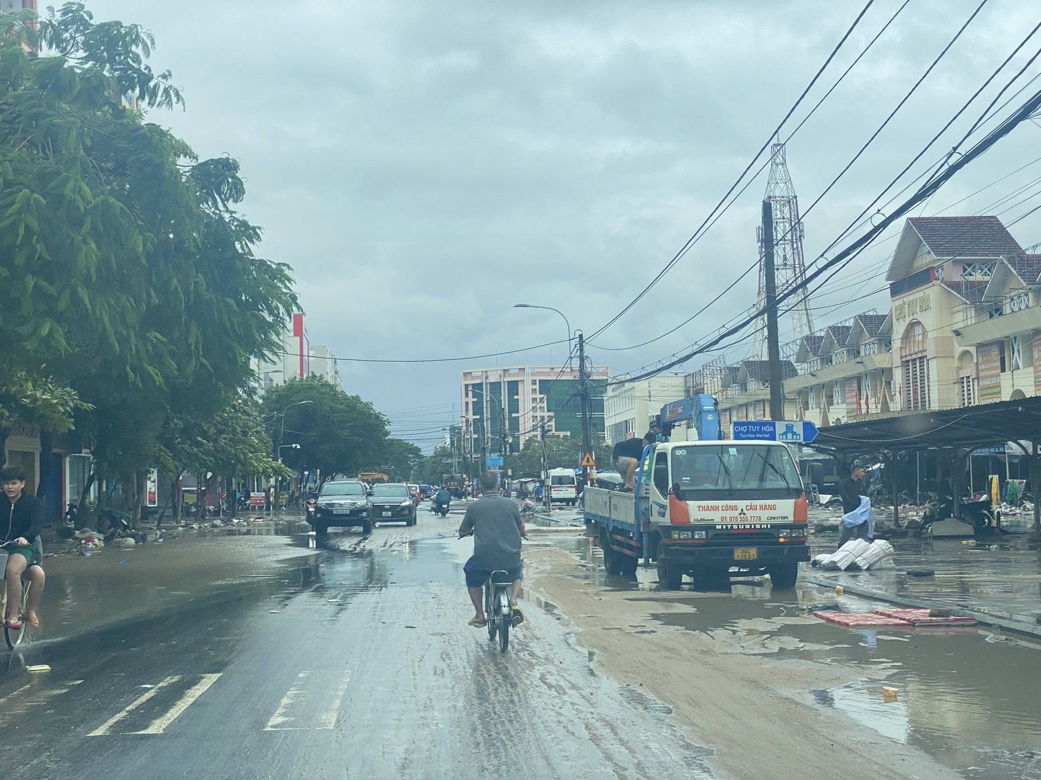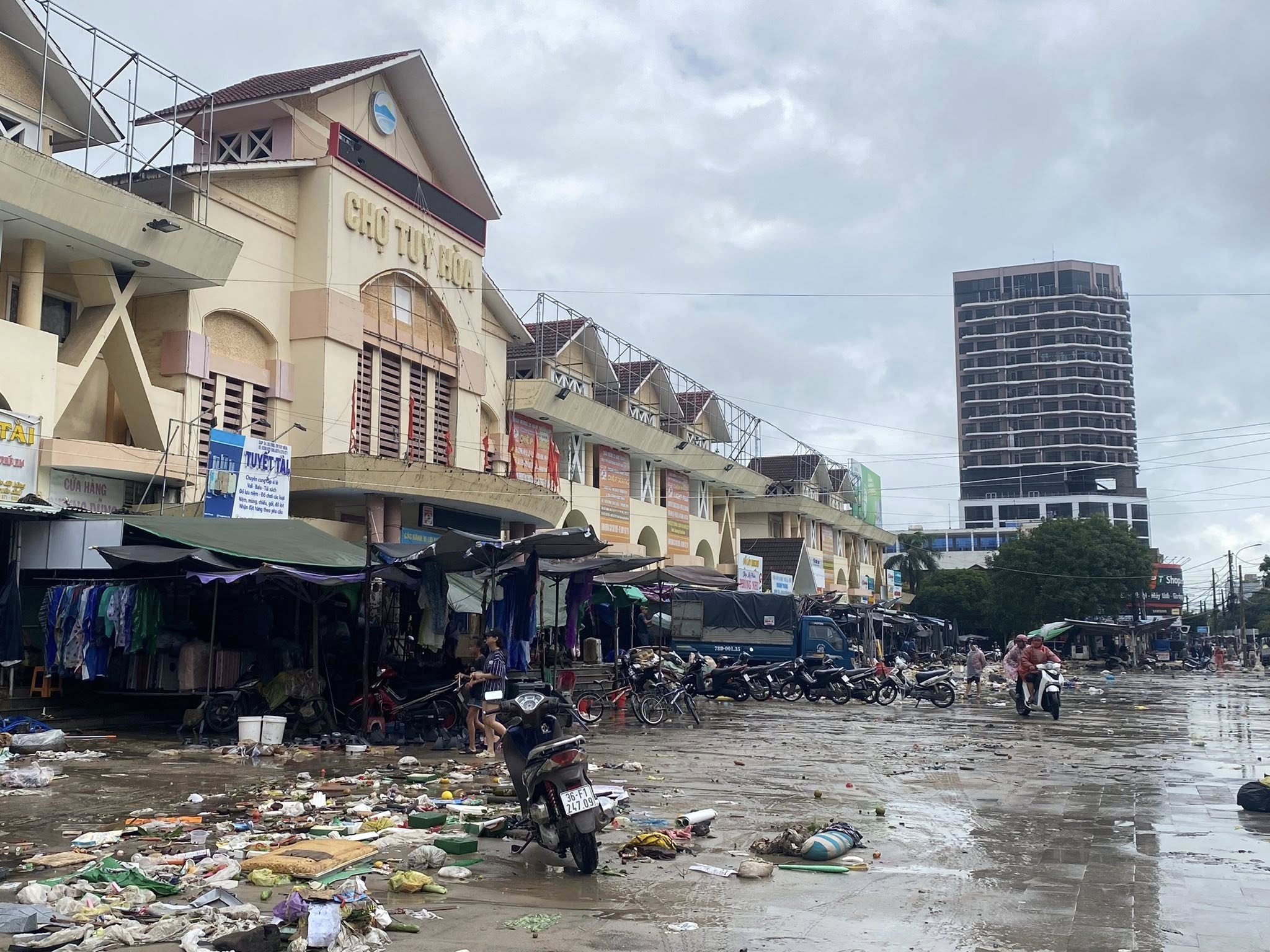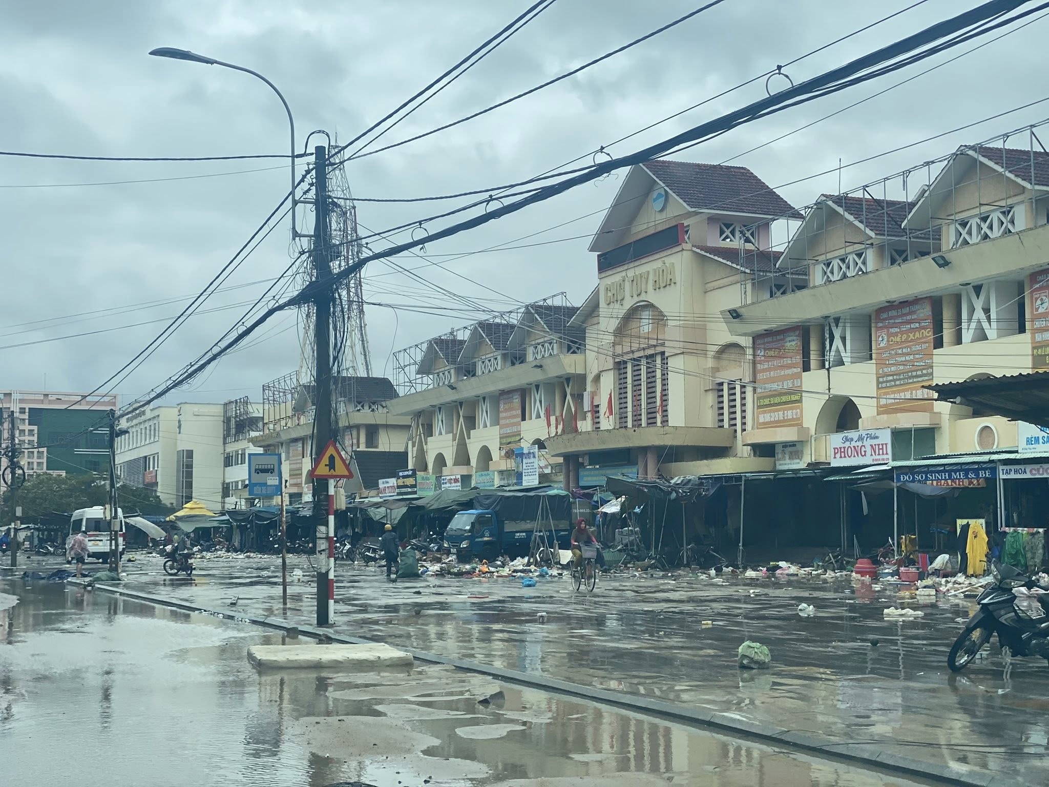 Trong khi đó, tại khu vực chợ Tuy Hòa (Phú Yên cũ), nước đã rút hẳn. Sau trận ngập lụt lịch sử, khắp khu vực ngổn ngang rác thải và những đồ dùng bị dòng nước cuốn dạt vào. Ảnh: Tropical Trip Phú Yên.