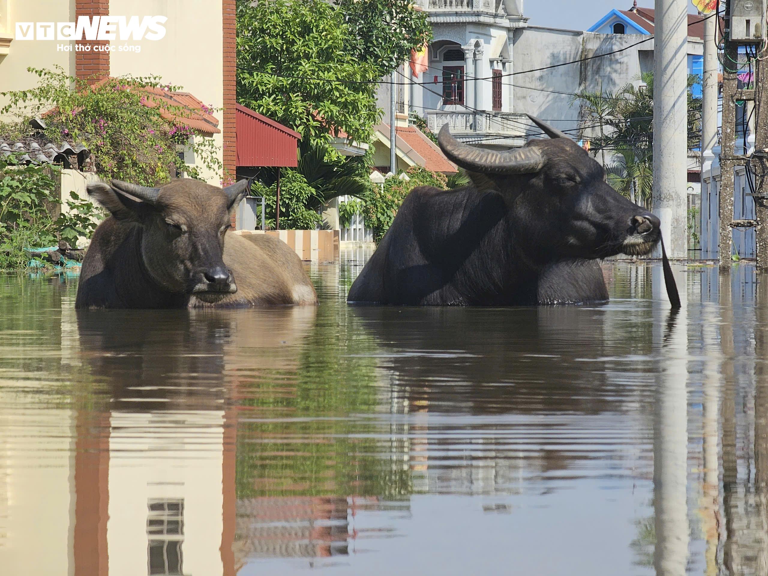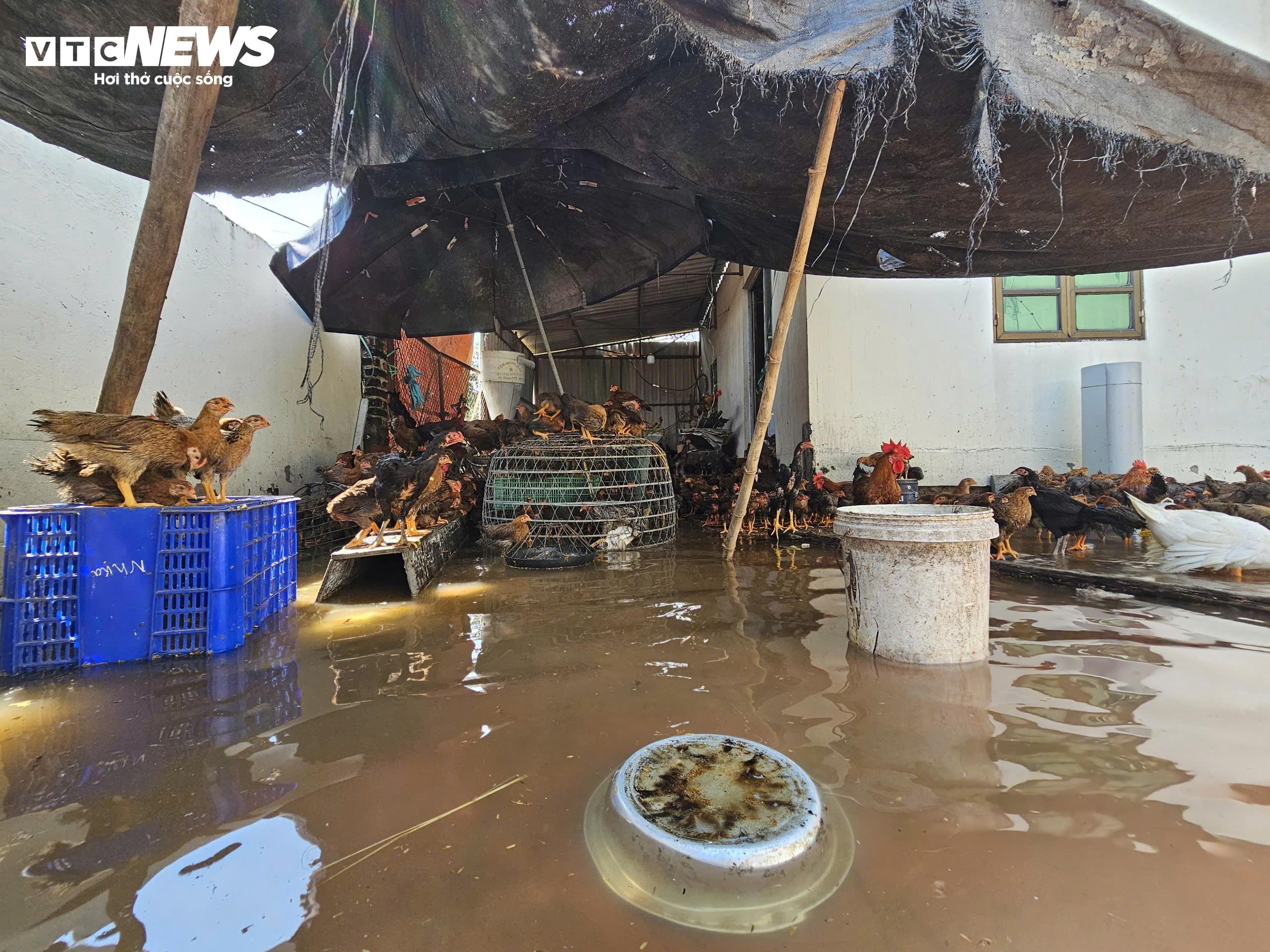 Nhiều hộ gia đình tại thôn Kim Tiên cũng rơi vào tình cảnh tương tự, không kịp trở tay di dời đàn vật nuôi khi nước lũ kéo tới. Đàn gia cầm chen chúc dưới mái che tạm, trâu bò phải ngâm mình hàng giờ trong nước lũ lạnh lẽo, vật lộn để tồn tại.