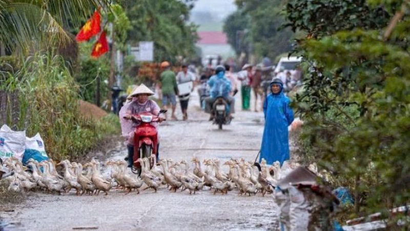 Nhiều người dân ở dưới thủy điện Ba Hạ nuôi vịt trong mùa mưa lũ để tránh thiệt hại.