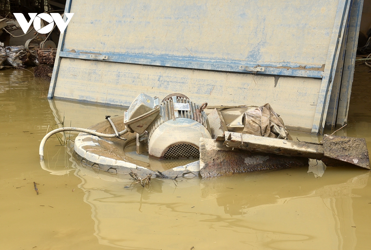 Sau nhiều ngày ngập sâu, máy móc, thiết bị bị đất bùn vùi lấp