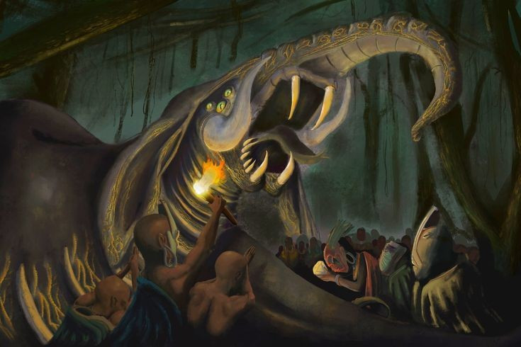 Đặc điểm siêu nhiên. Nhiều câu chuyện dân gian mô tả Grootslang có khả năng thay đổi hình dạng, xuất hiện bất ngờ trong bóng tối và biến mất khi bị truy đuổi, làm tăng vẻ huyền bí và đáng sợ của sinh vật này. Ảnh: tombfree.com.