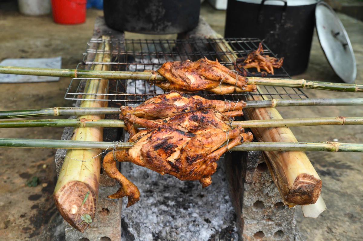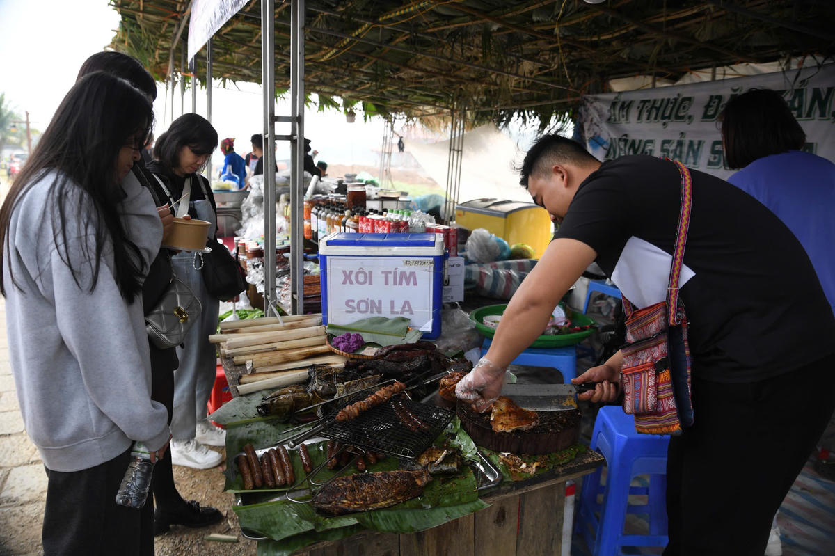 Nhiều món ăn truyền thống được chế biến trực tiếp tại phiên chợ, lan tỏa hương vị cuốn hút và trở thành điểm dừng chân hấp dẫn đối với du khách. Ảnh: Phạm Sỹ.