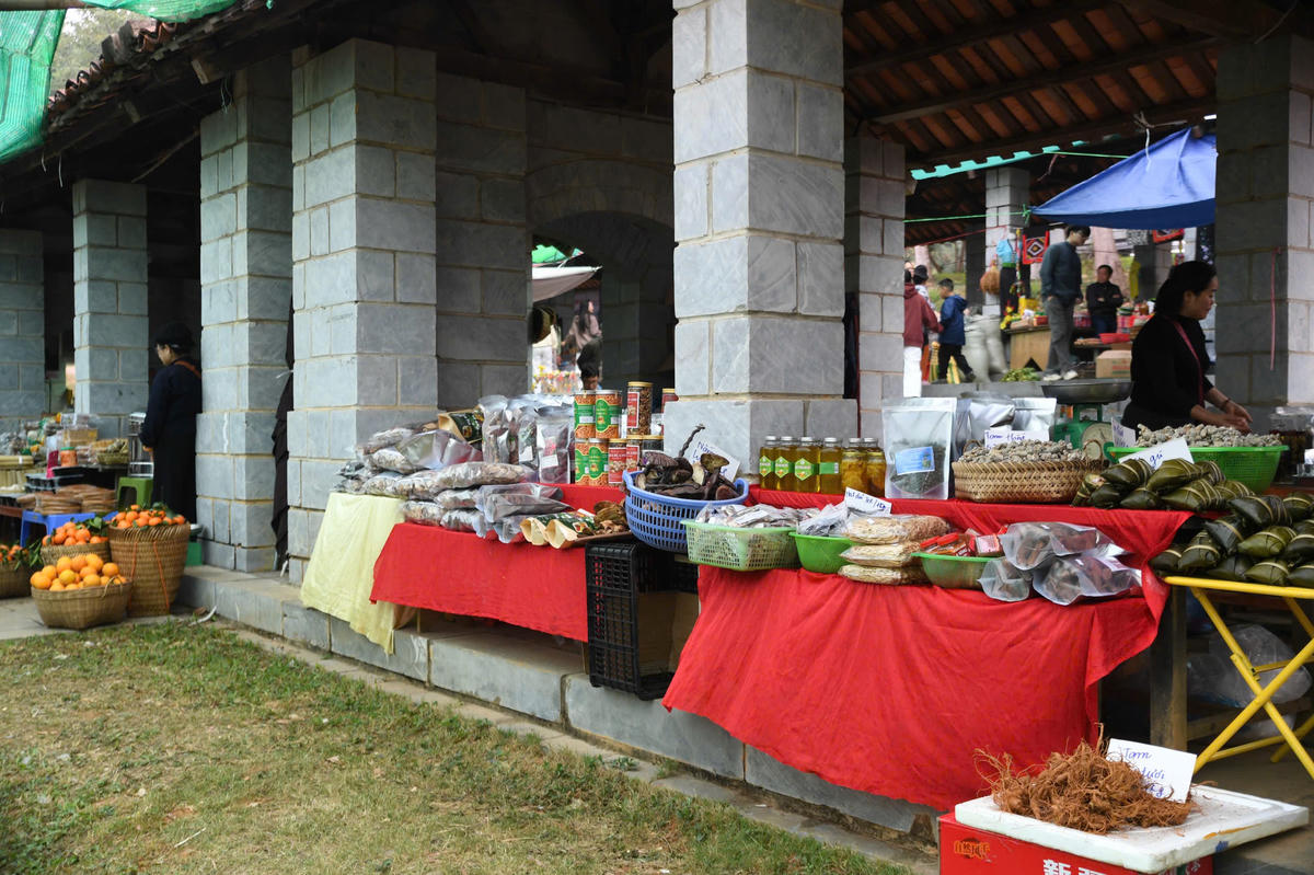 Nhiều đặc sản và sản vật của miền núi được mang xuống chợ, giới thiệu tới du khách trong không khí mua bán rộn ràng của phiên chợ vùng cao. Ảnh: Phạm Sỹ.