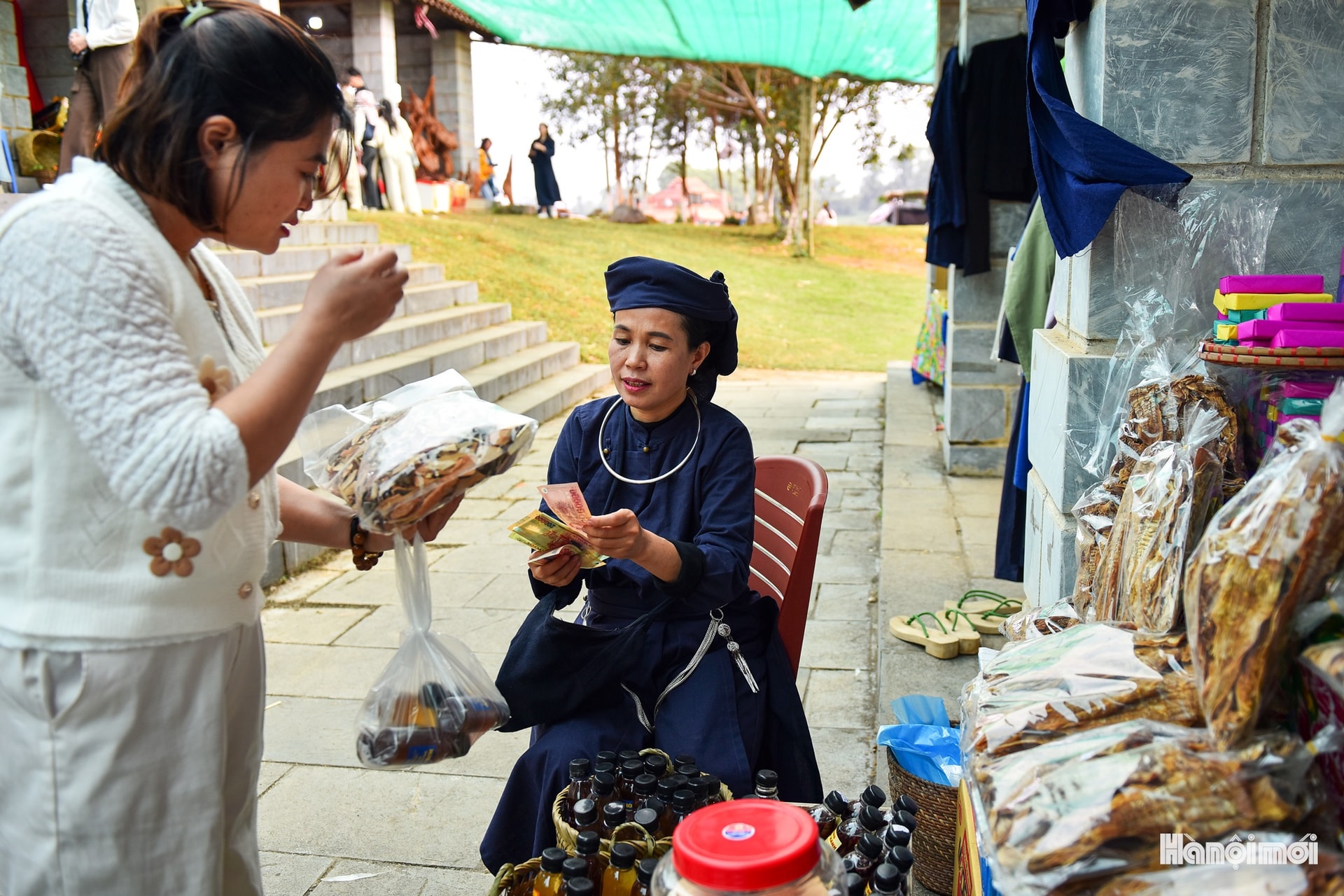 Phiên chợ không chỉ là nơi trưng bày, mà còn là không gian giao thương truyền thống.
