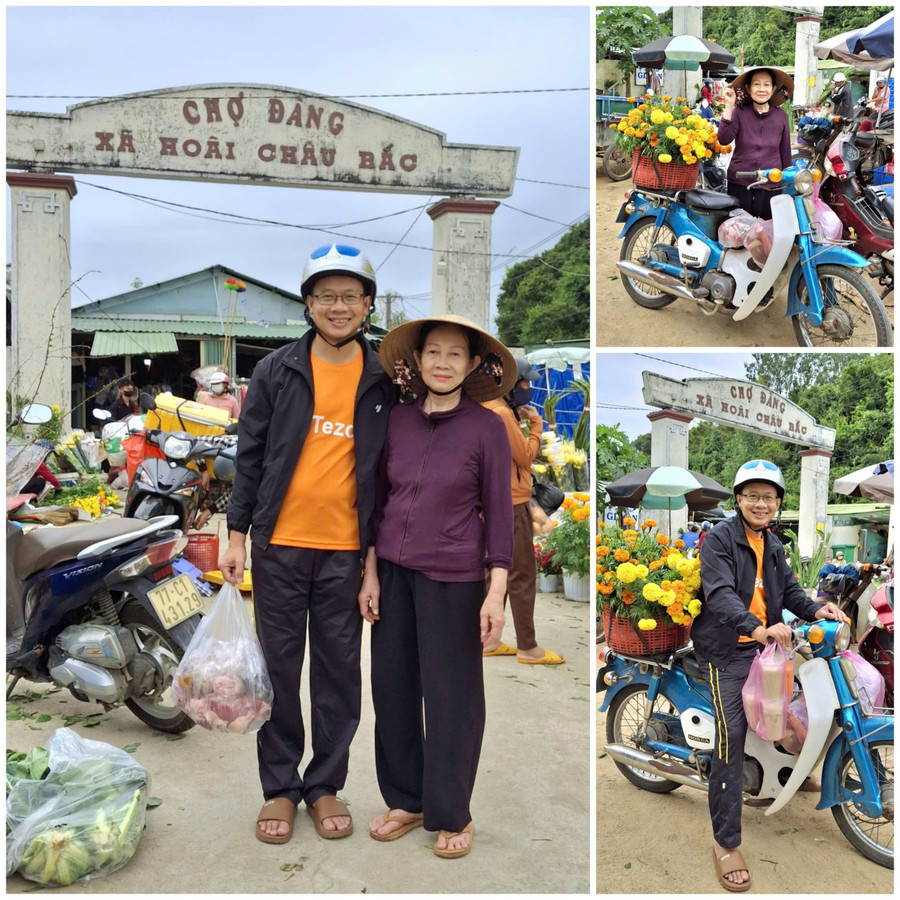 Anh Trần Quốc Việt cùng mẹ đi chợ Tết vào ngày cuối năm. Ảnh: NVCC