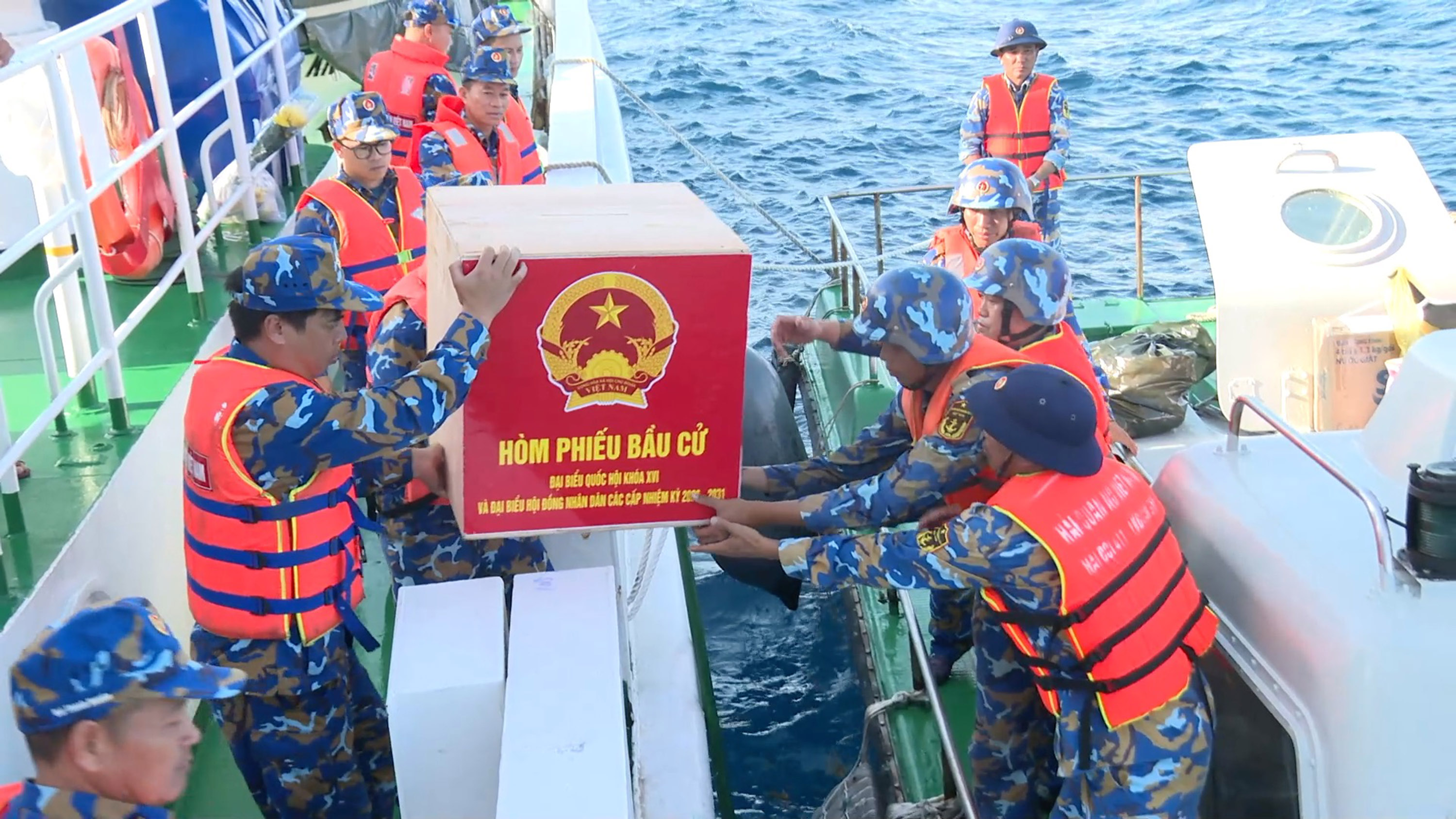 Đoàn công tác của Lữ đoàn 146 (Vùng 4 Hải quân) đã đến các đảo thuộc đặc khu Trường Sa, mang theo hòm phiếu, phiếu bầu và tài liệu phục vụ bầu cử