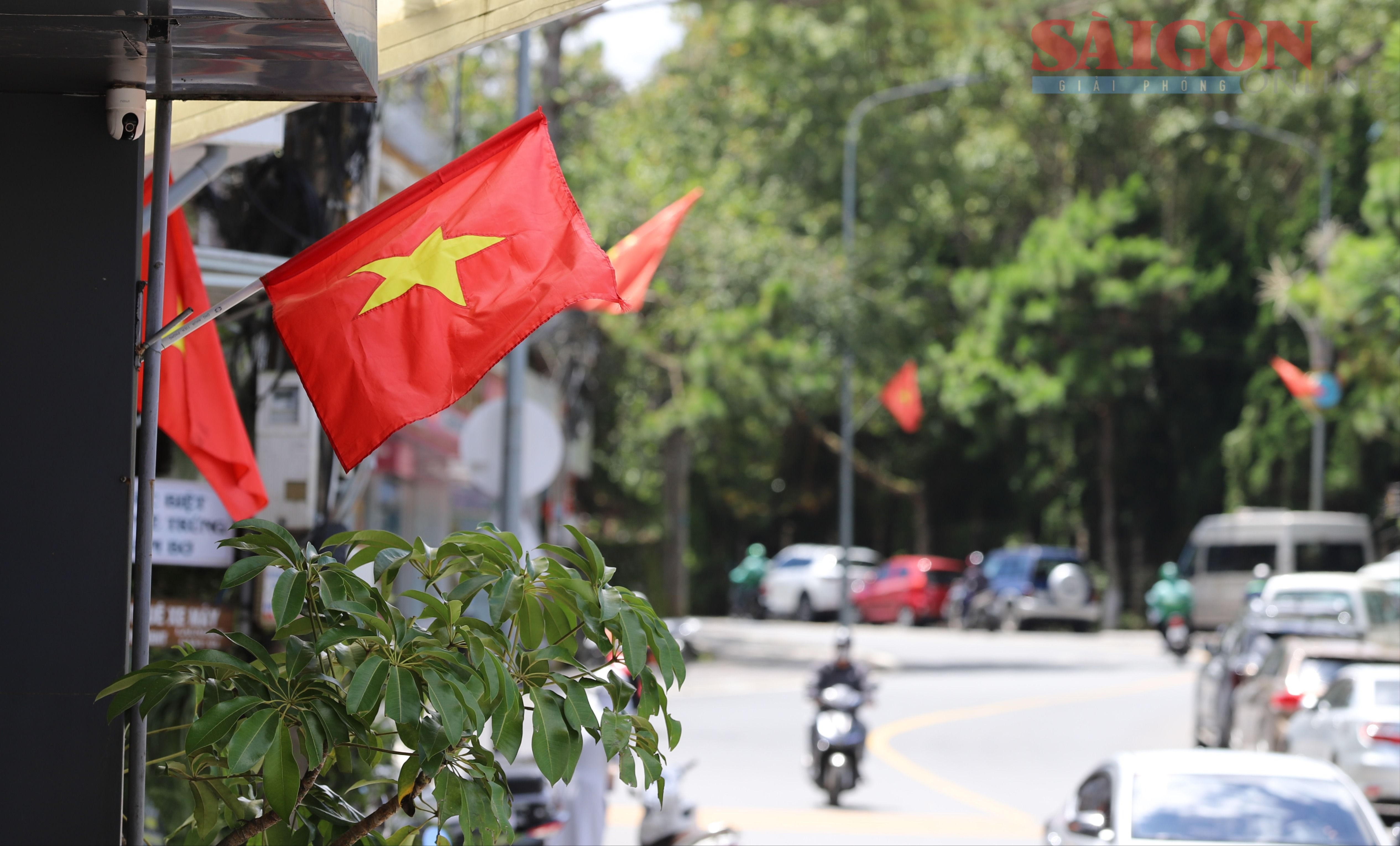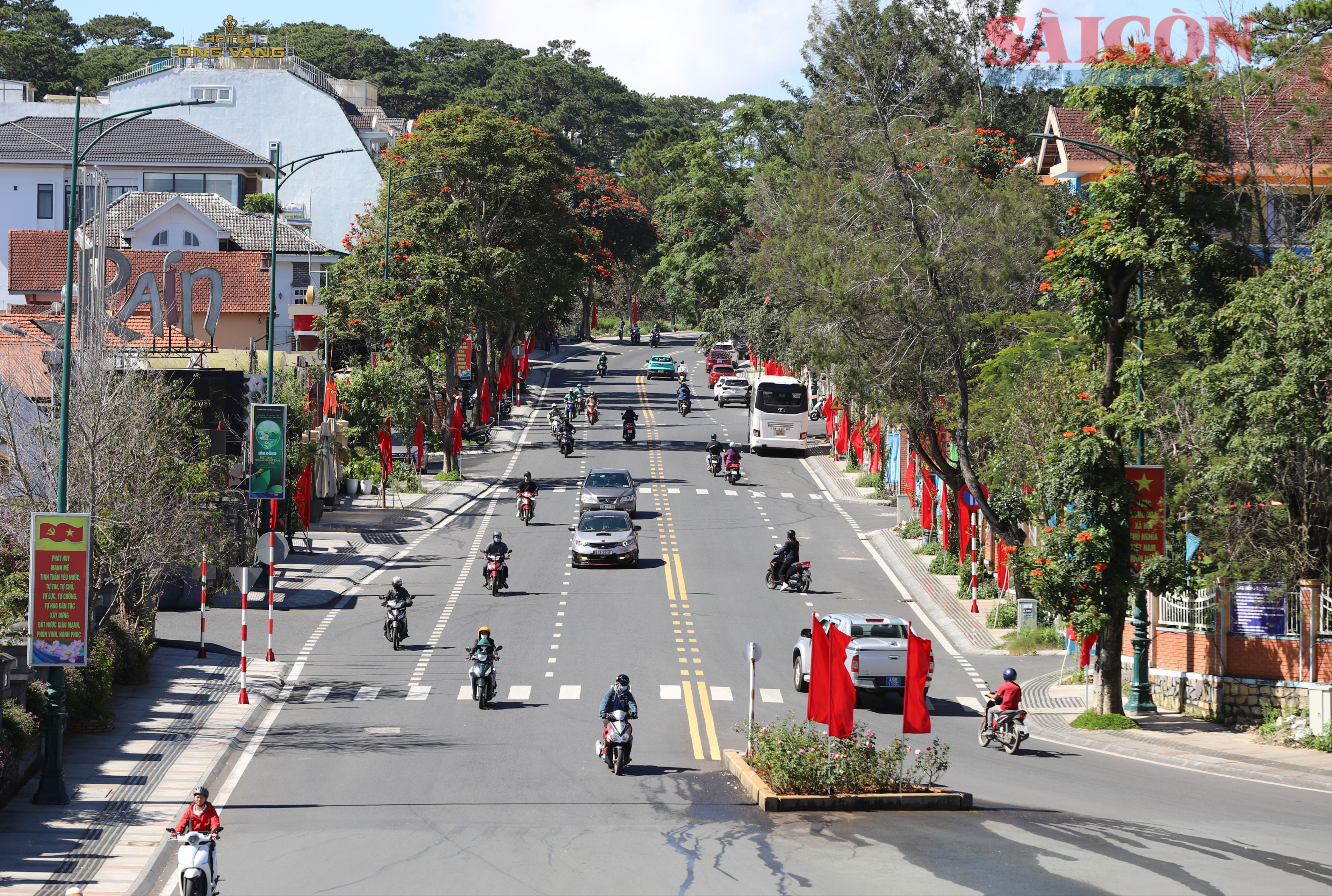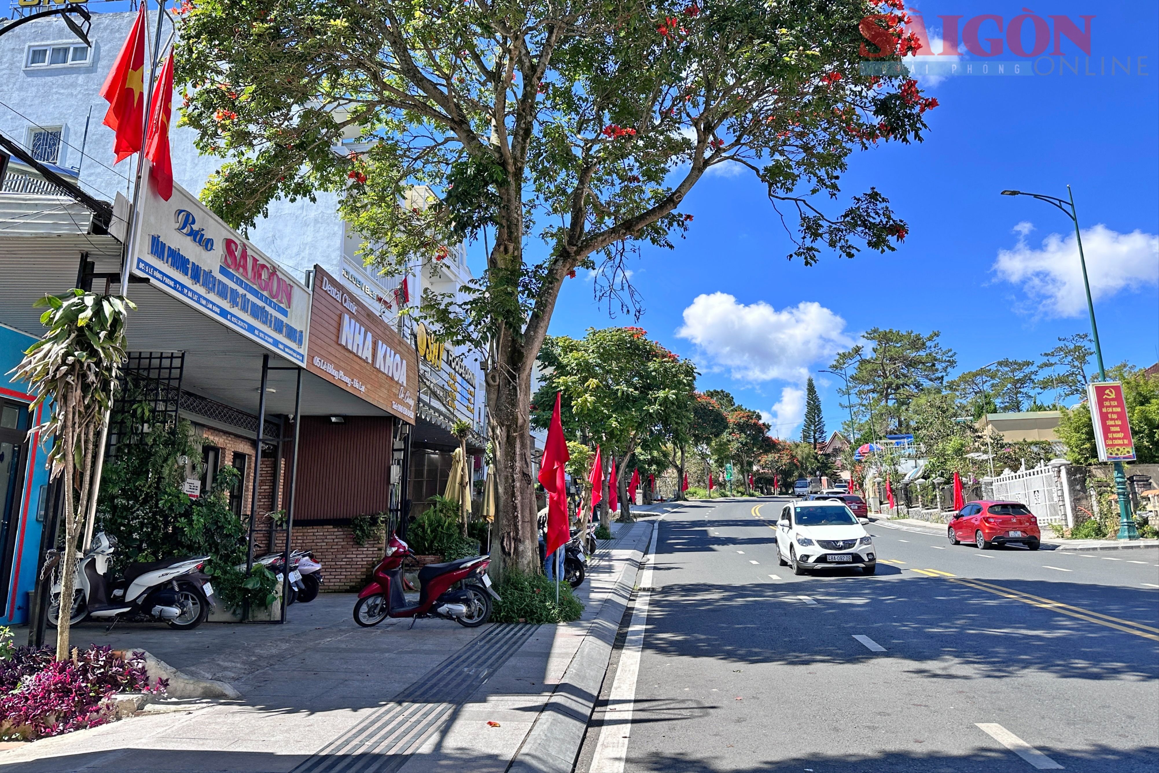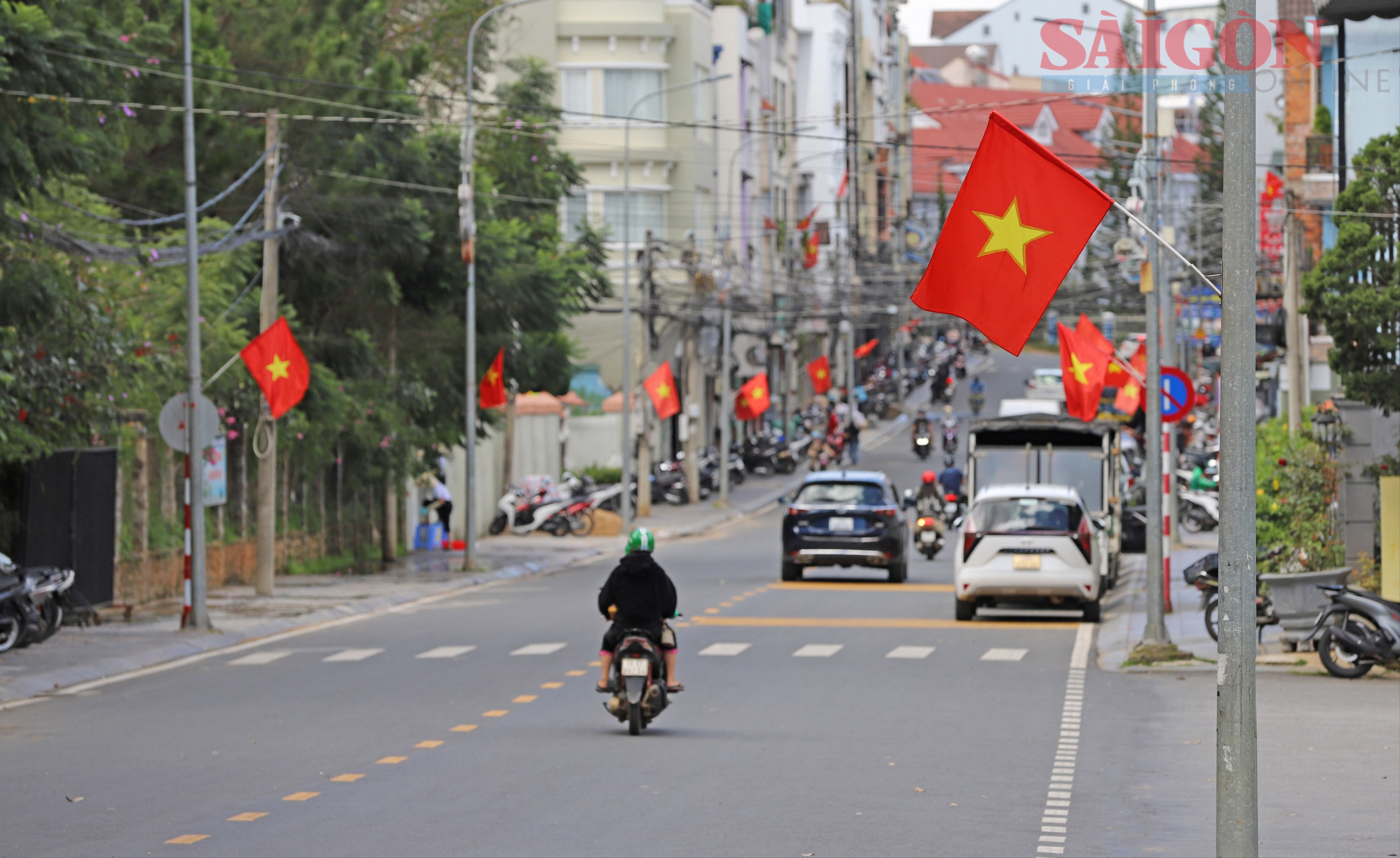 Đường Phạm Ngũ Lão, phường Xuân Hương – Đà Lạt rợp cờ tổ quốc. Ảnh: ĐOÀN KIÊN