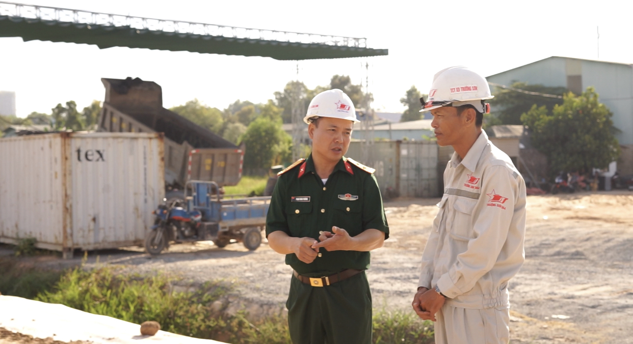 Trung tá Phạm Minh Phương có mặt chỉ huy trực tiếp tại công trường thi công đường Vành đai 3 TPHCM