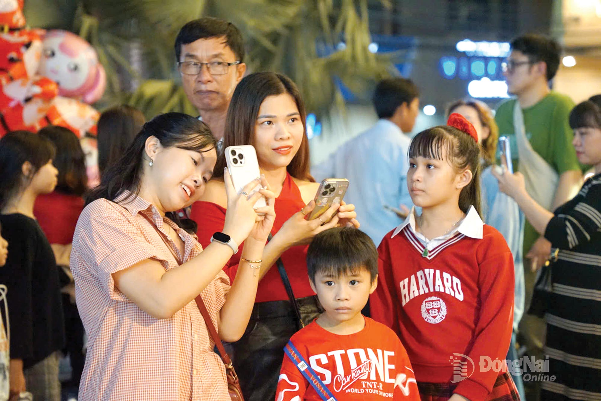Đêm Giáng sinh, nhiều gia đình tập trung tại Trung tâm Thương mại Vincom, phường Tam Hiệp cùng vui chơi và chụp ảnh. Ảnh: Lê Duy