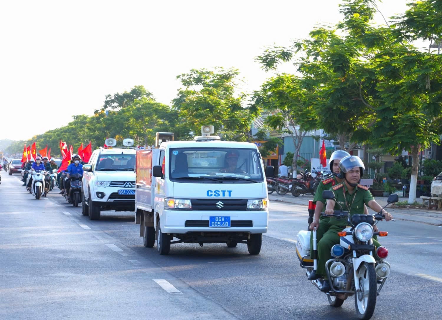 Lực lượng đoàn viên, thanh niên cùng các hội viên cựu chiến binh diễu hành bằng xe gắn loa phát thanh, treo cờ, băng rôn và phát các nội dung tuyên truyền về quyền, nghĩa vụ của cử tri cũng như ý nghĩa của việc tham gia bầu cử.