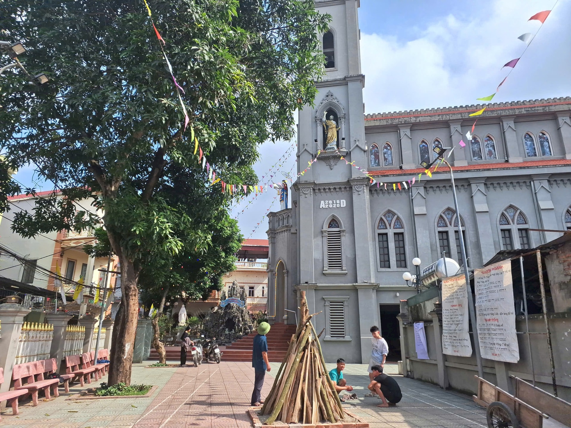 Họ giáo Đại Thần (xã Đan Phượng) trang trí nhà thờ chuẩn bị lễ Giáng sinh 2025. Ảnh: Nguyễn Mai