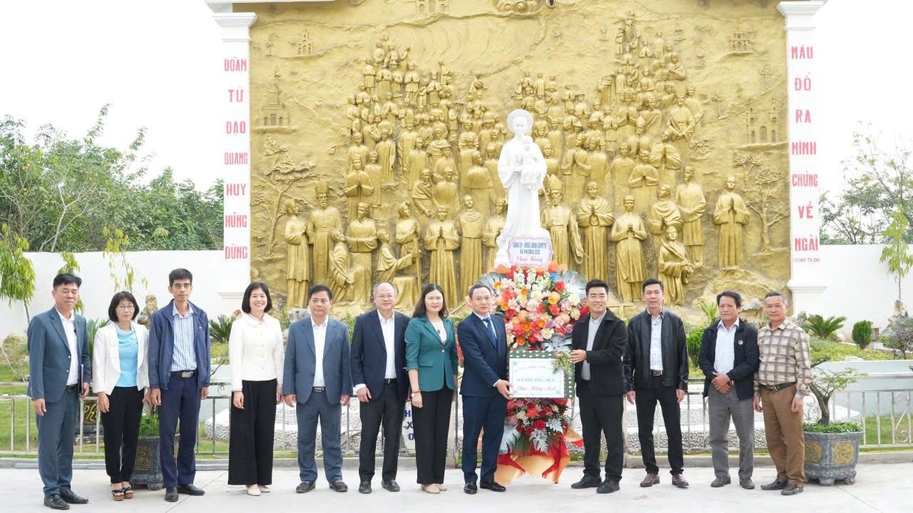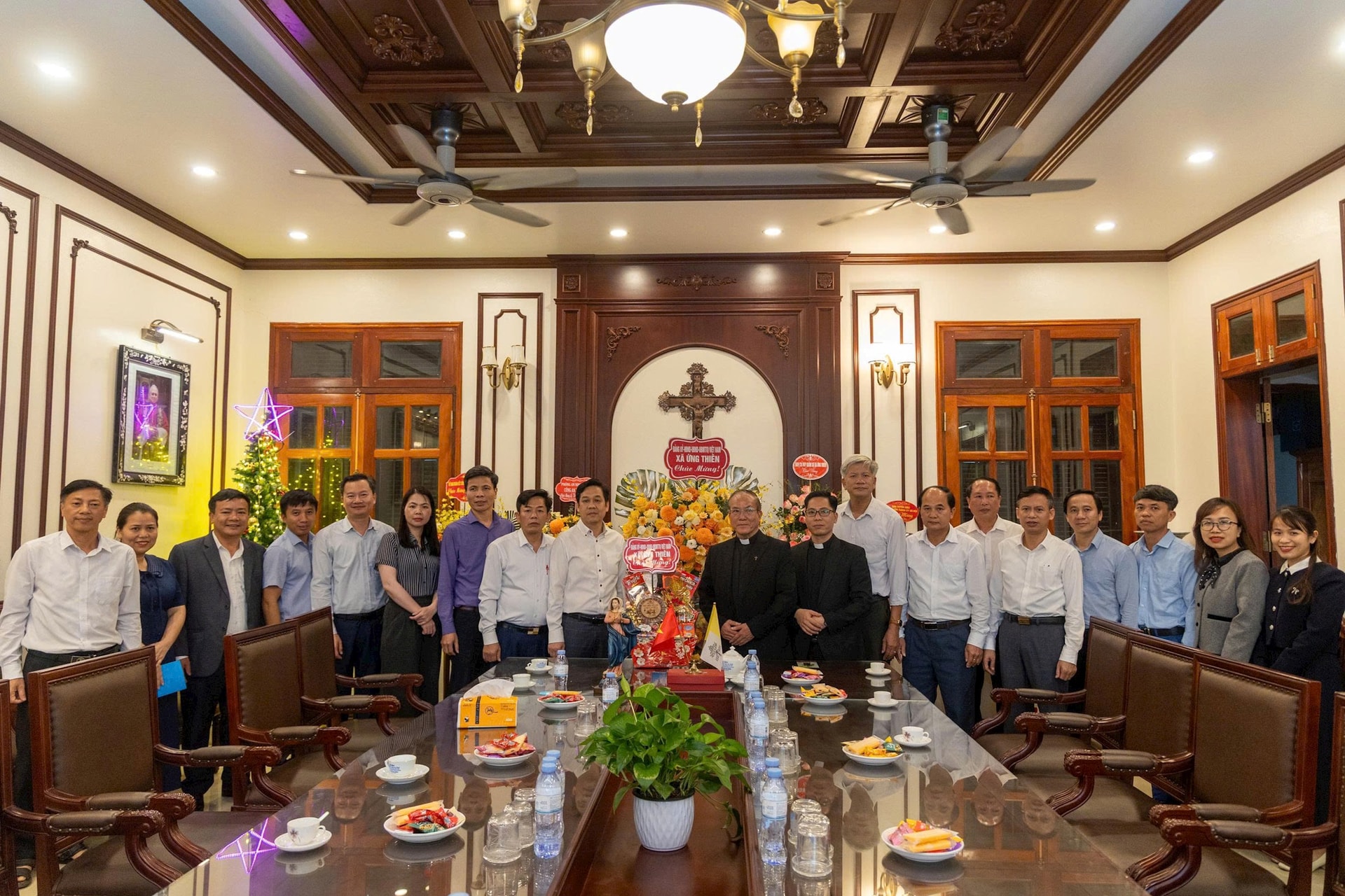Lãnh đạo xã Phượng Dực thăm, chúc mừng các giáo xứ trên địa bàn. Ảnh: Thanh Trang