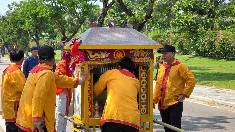Từ chiều ngày 2.4, đông đảo ngư dân, bà con vùng biển Cửa Đại, Hội An Đông đã tề tựu chuẩn bị lễ nghinh thần