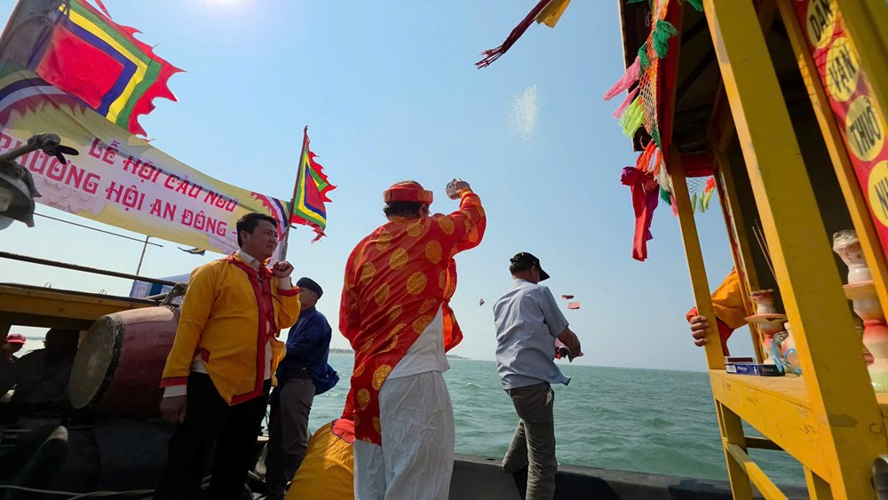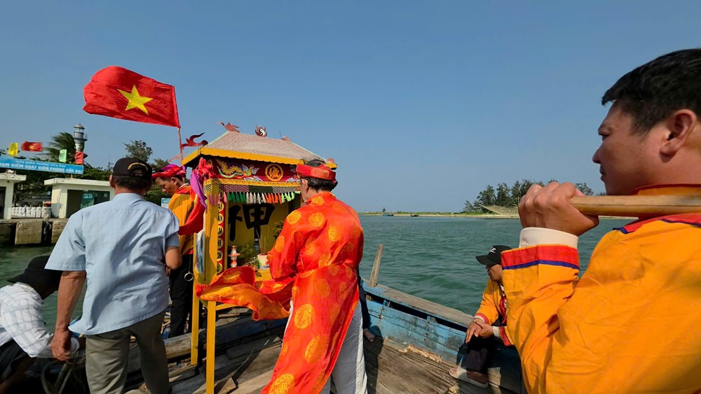 Thực hiện nghi thức nghinh thần trên biển