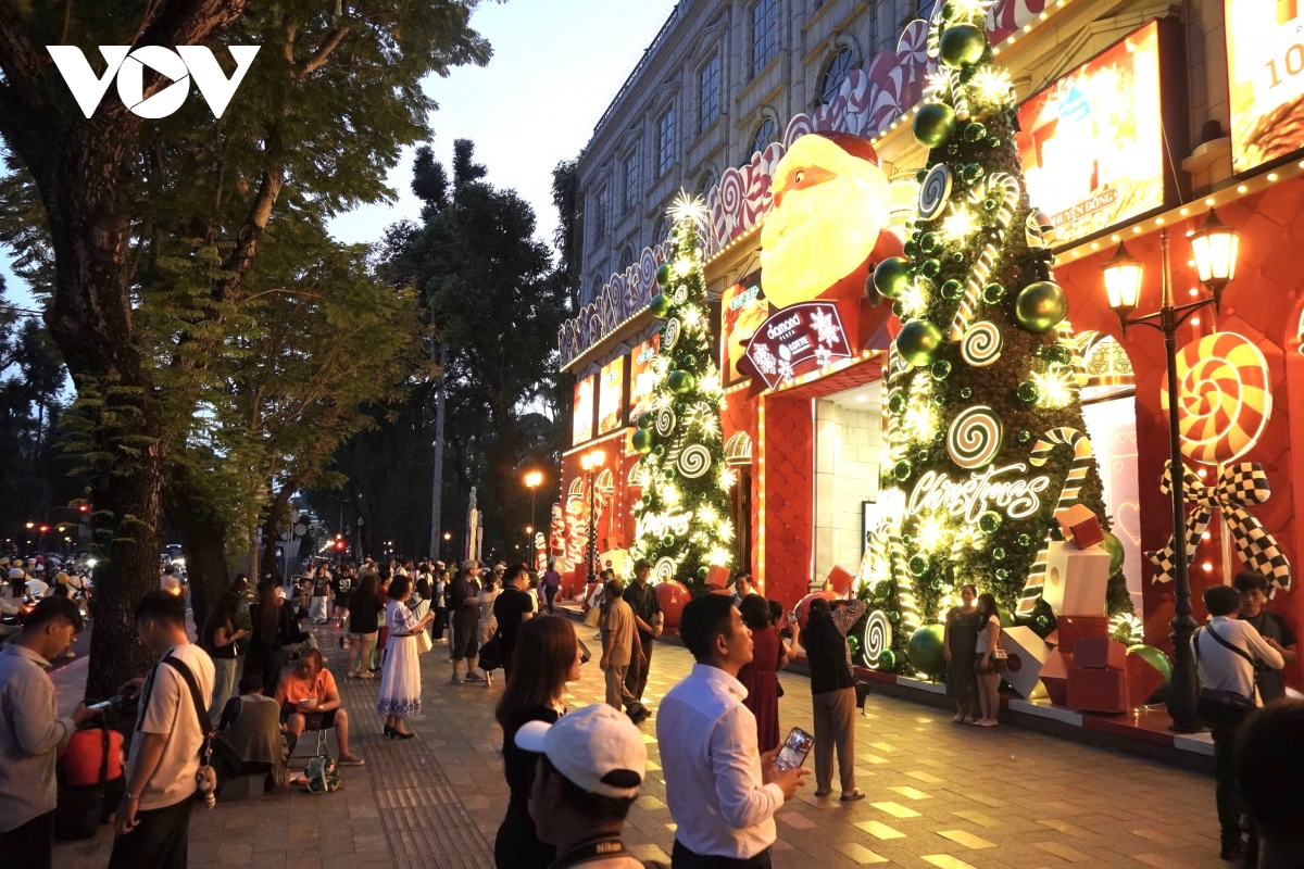 Du khách tham quan các địa điểm trang trí Giáng sinh