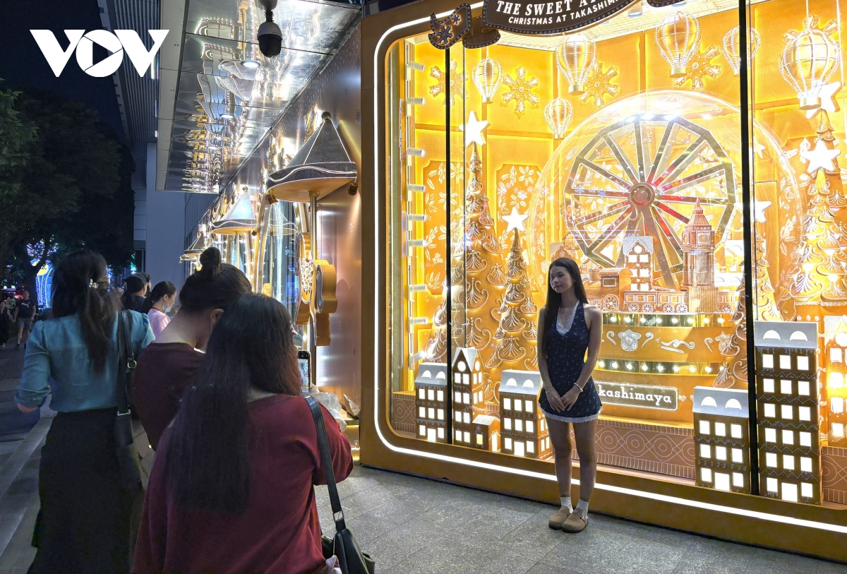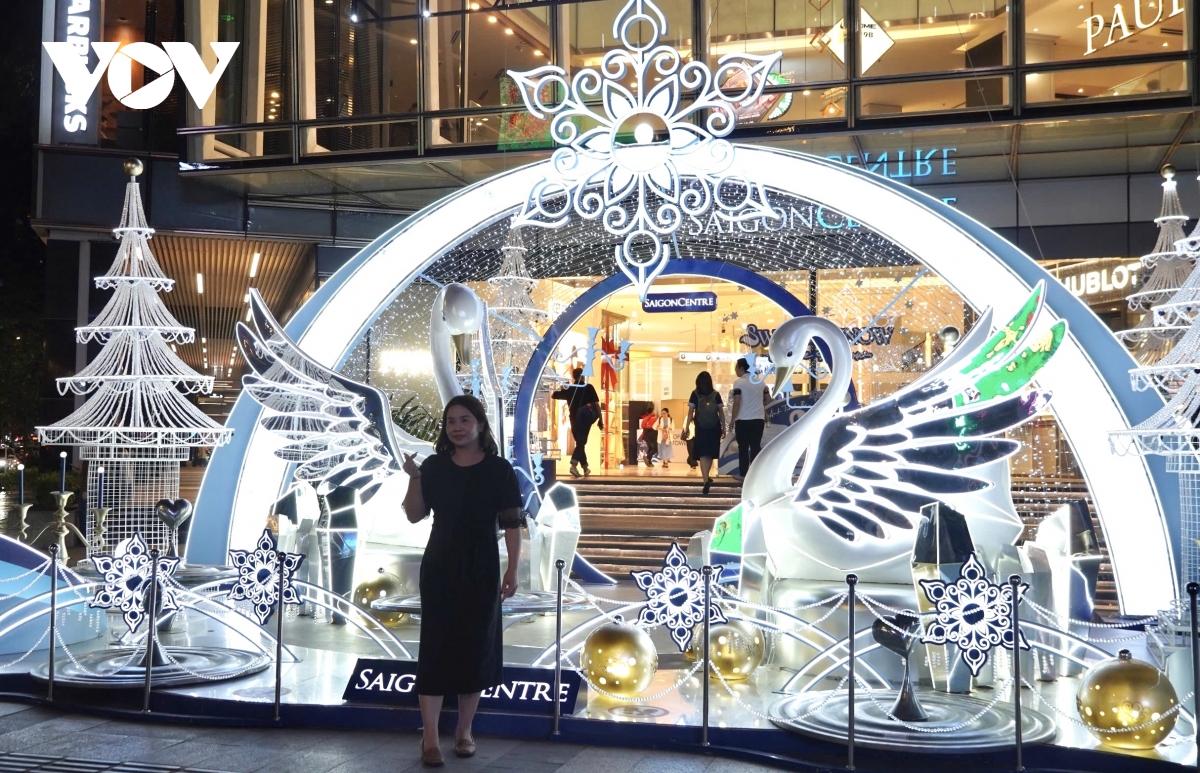 Năm nay, các địa điểm quen thuộc như: Nhà thờ Đức Bà, phường Sài Gòn (Quận 1 cũ) khu vực trước các trung tâm thương mại, cửa hàng và quán cà phê tại khu vực trung tâm thành phố đều khoác lên mình diện mạo rực rỡ.