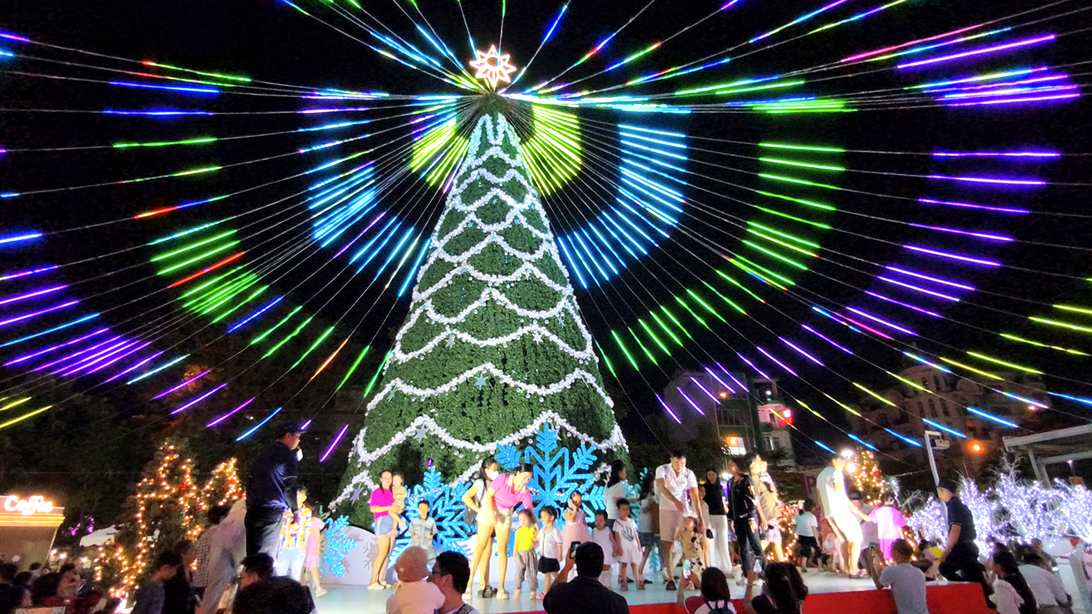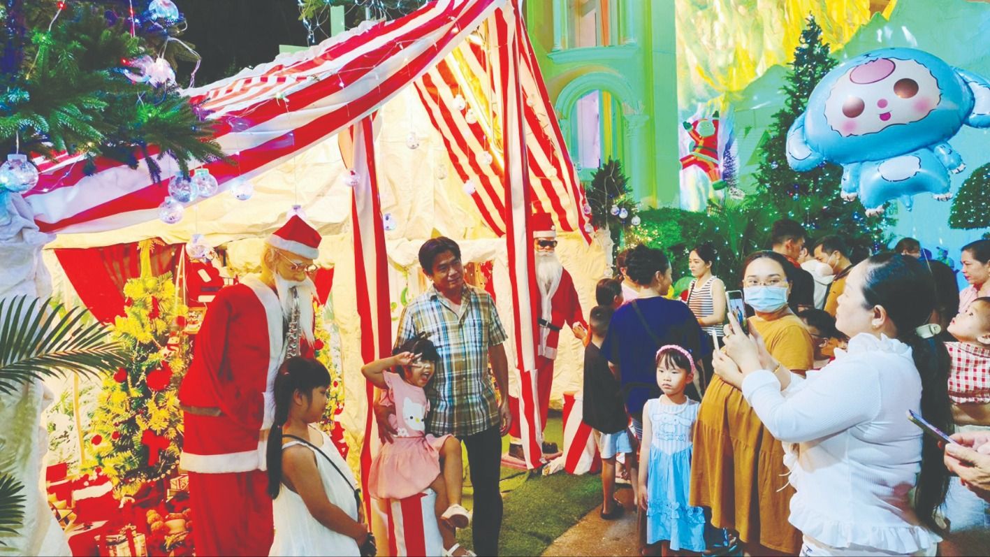 Cây thông Noel cỡ lớn tại siêu thị Aeon Bình Tân thu hút người dân, nhất là trẻ em đến vui chơi, chụp ảnh