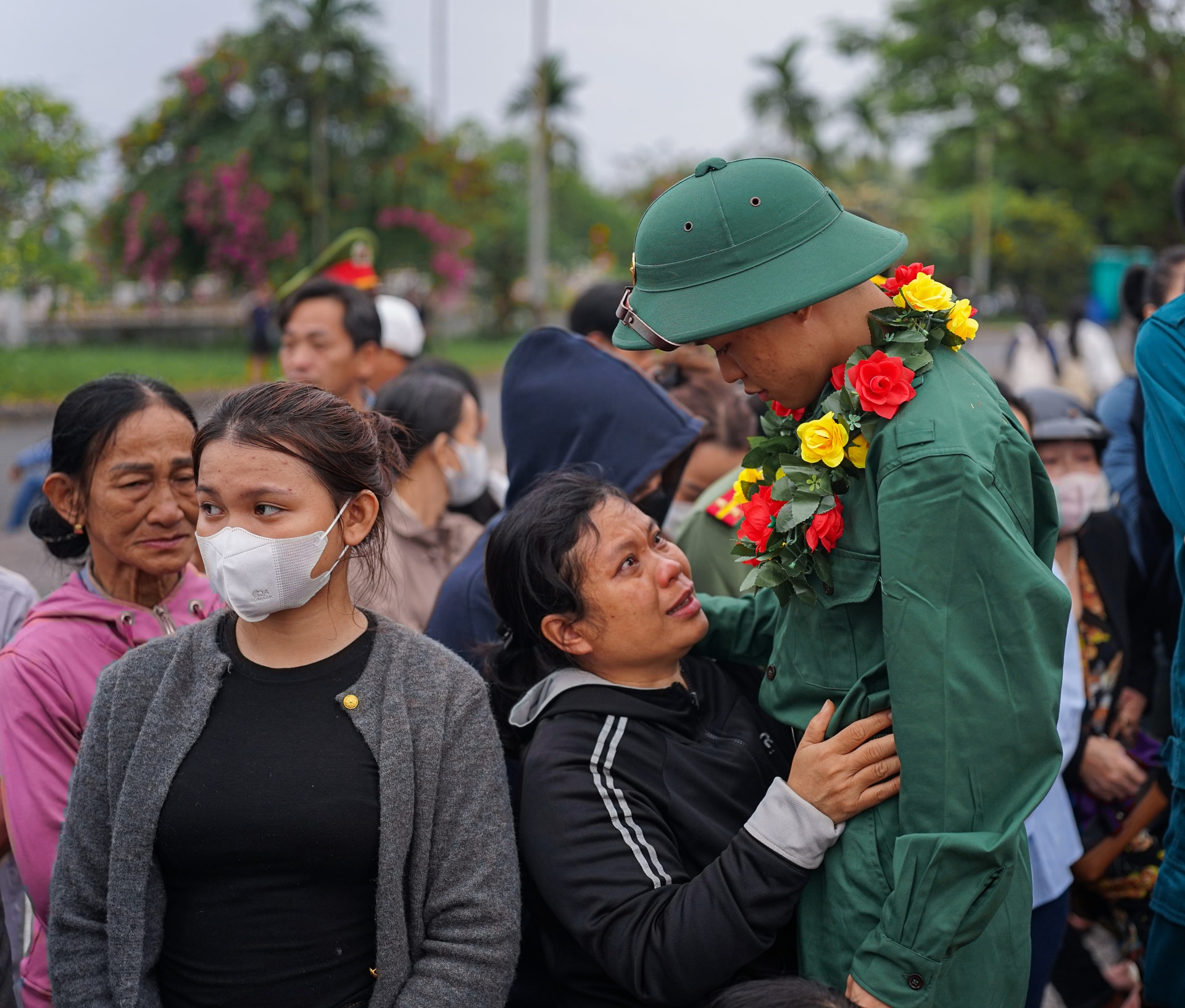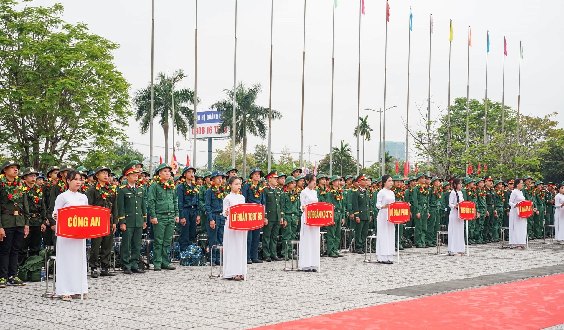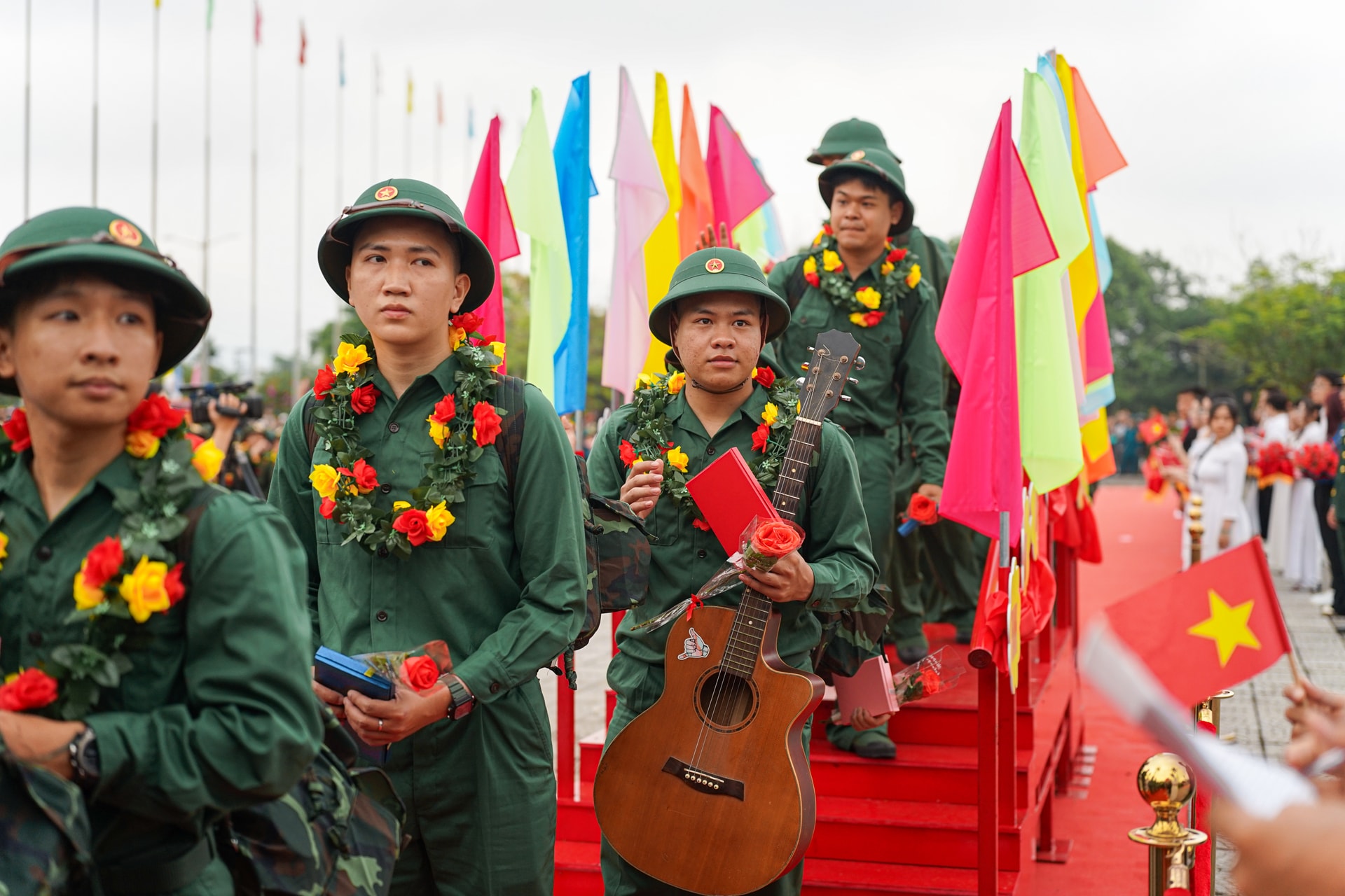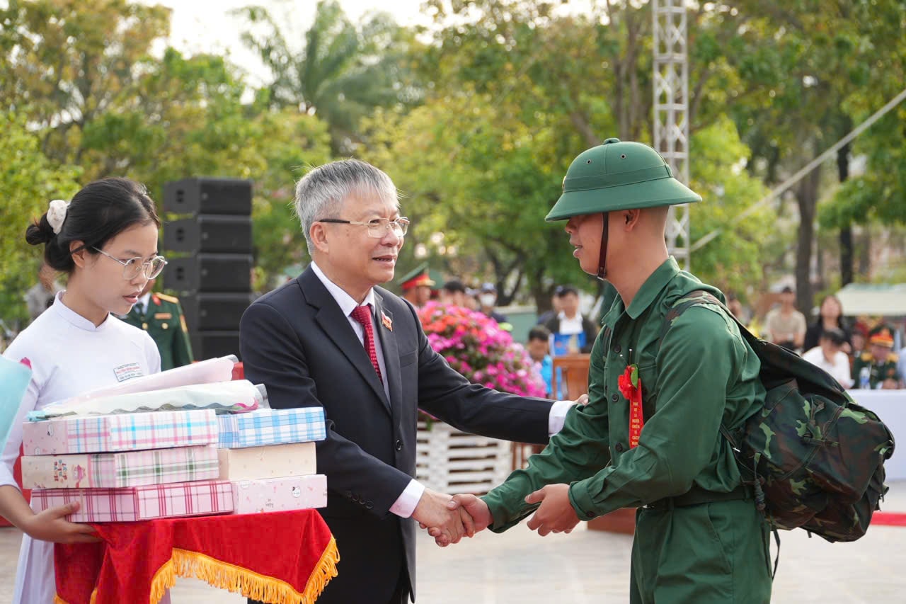 Trong không khí rộn ràng của lễ giao nhận quân, lãnh đạo thành phố và các địa phương cùng gia đình, người thân tặng hoa, động viên các chiến sĩ lên đường thực hiện nghĩa vụ thiêng liêng với Tổ quốc.
