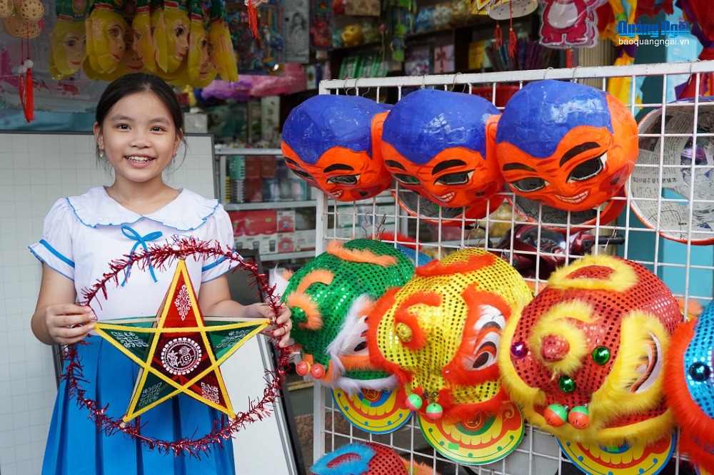 Em Nguyễn Hão Khánh Hà, ở phường Cẩm Thành, hạnh phúc khi được bố dẫn đi mua lồng đèn và đồ chơi.