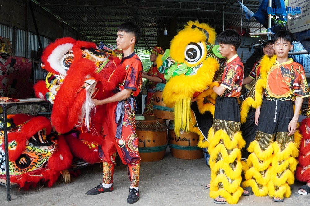 Tại cơ sở làm lân của anh Nguyễn Quang Thắng, ở xã Tư Nghĩa, dịp tết Trung thu là khoảng thời gian tất bật nhất trong năm. Không gian nhỏ bé bỗng hóa thành một “xưởng nghệ thuật” với sắc màu rực rỡ và nhịp điệu sống động.