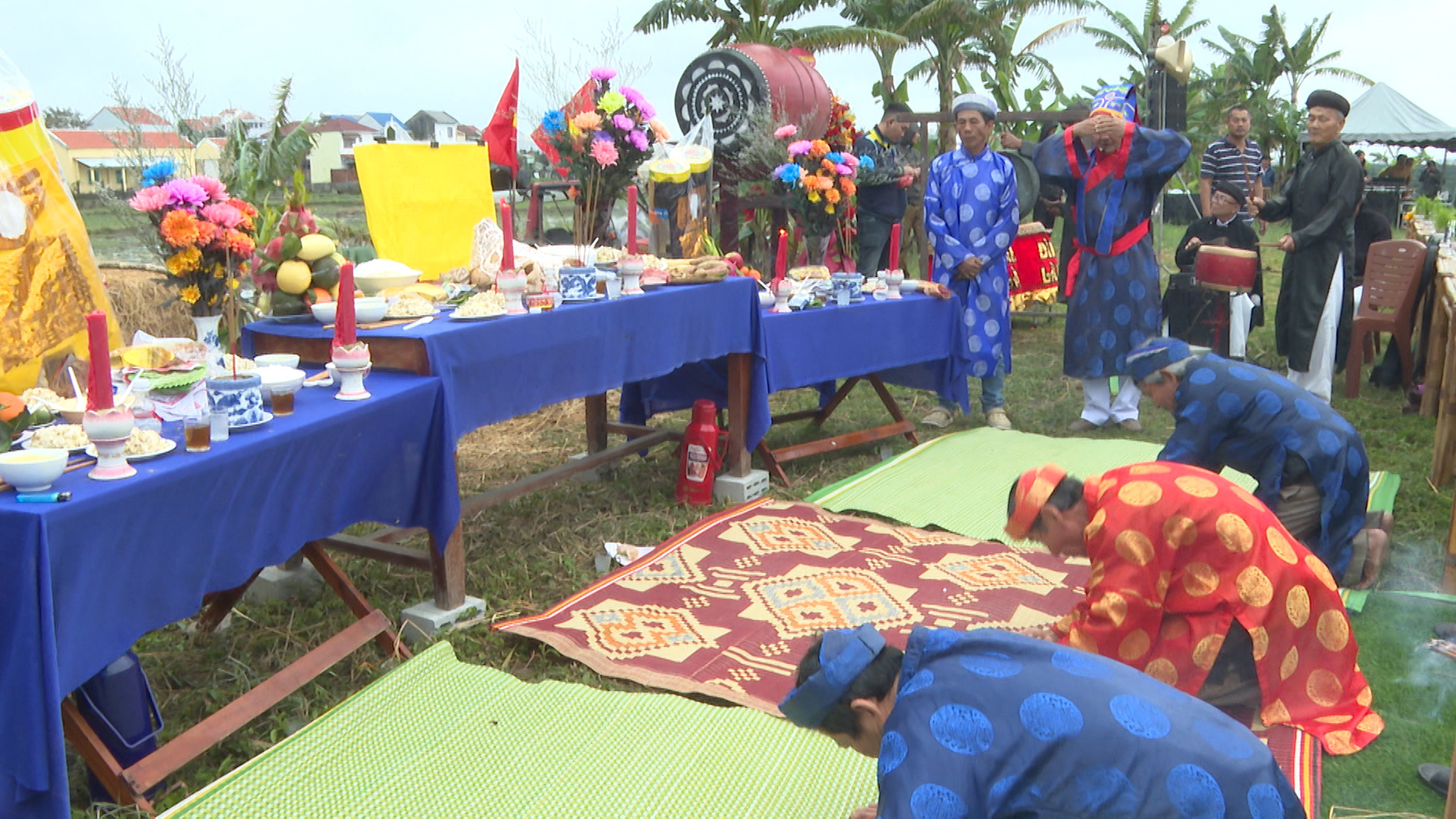Người dân làng Phước Ấm dâng lễ vật. Ảnh: QUỐC THÀNH