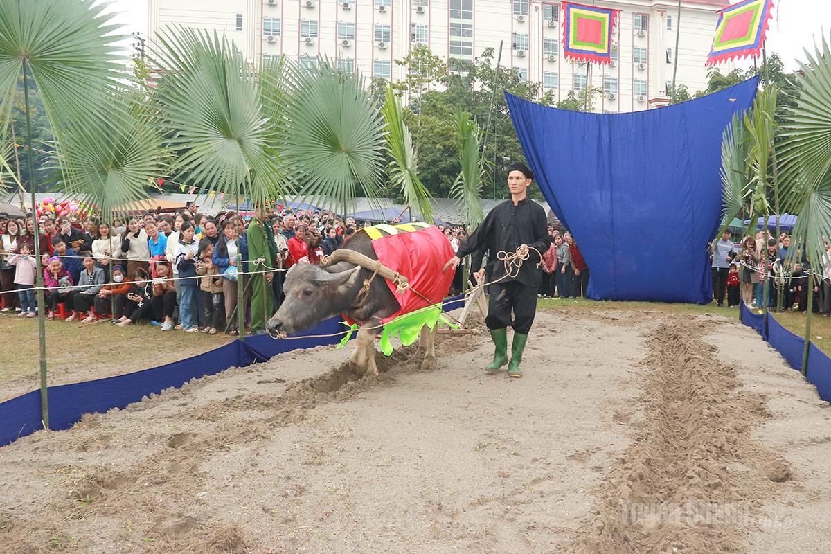 Nghi lễ cày ruộng đầu Xuân do các bậc cao niên của xã Chiêm Hóa thực hiện.
