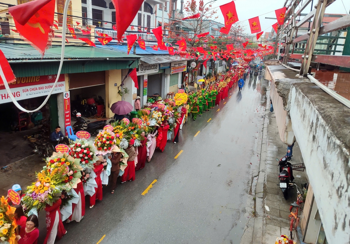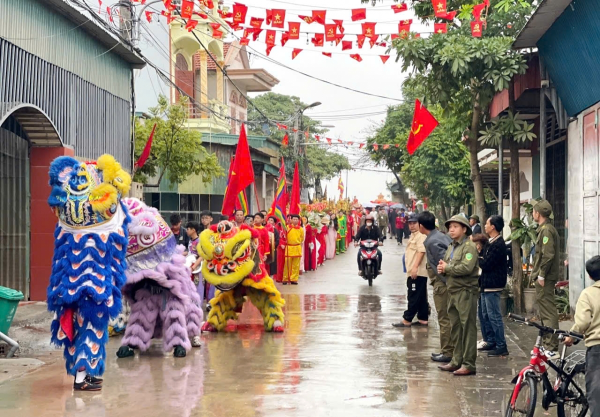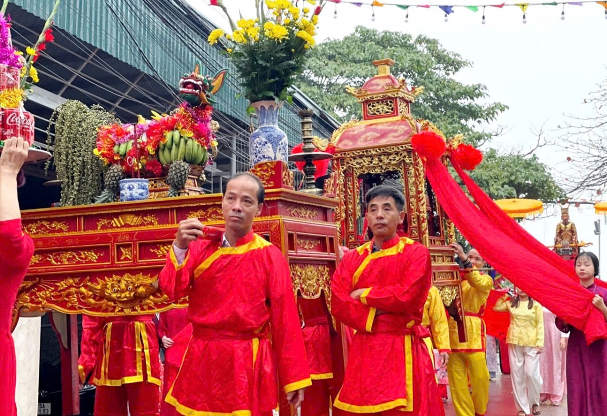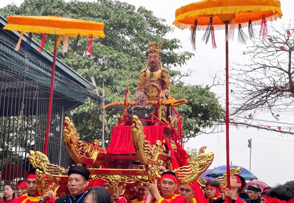 Kiệu được rước quanh làng trong tiếng trống hội rền vang. Người dân hai bên đường thành kính dâng hương, cầu mong một năm mưa thuận gió hòa, mùa màng bội thu, gia đình bình an.