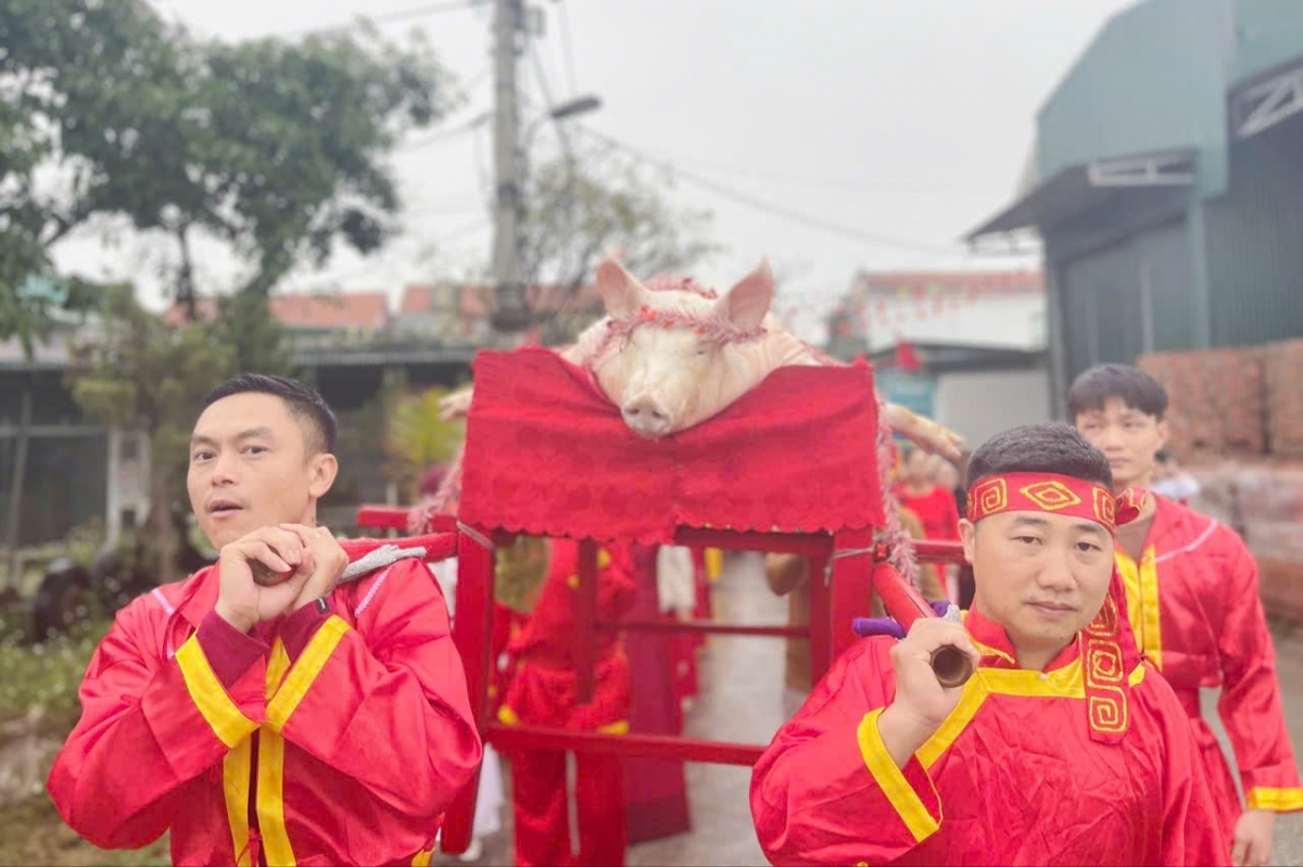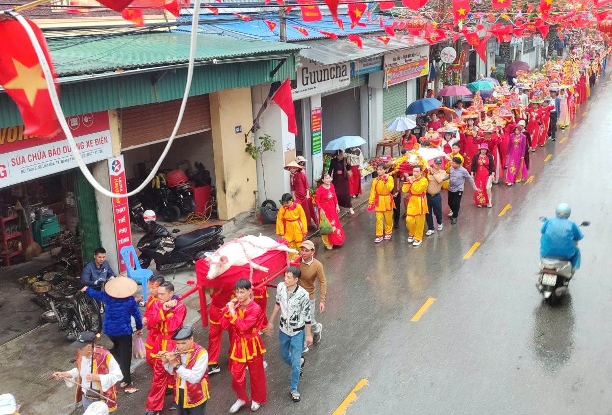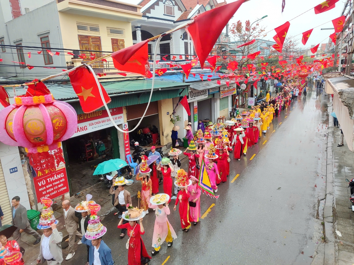 Kiệu được rước quanh làng trong tiếng trống hội rền vang. Người dân hai bên đường thành kính dâng hương, cầu mong một năm mưa thuận gió hòa, mùa màng bội thu, gia đình bình an.