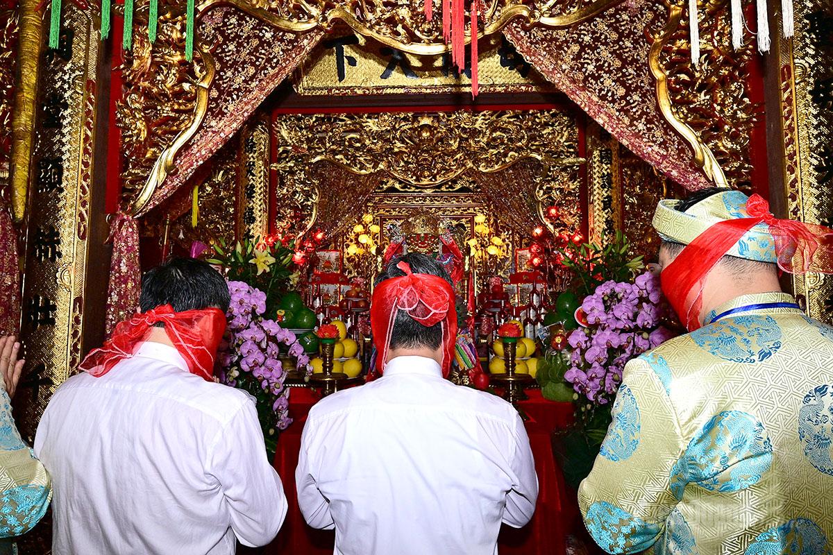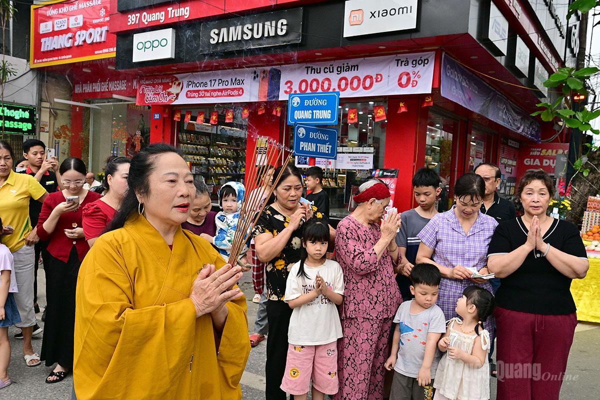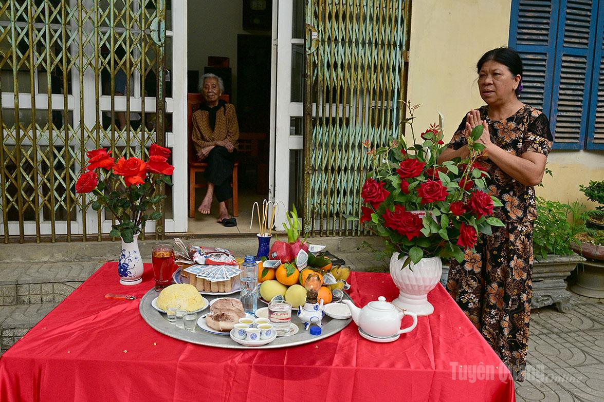 Các gia đình cúng bái vọng Thánh Mẫu cầu xin may mắn.