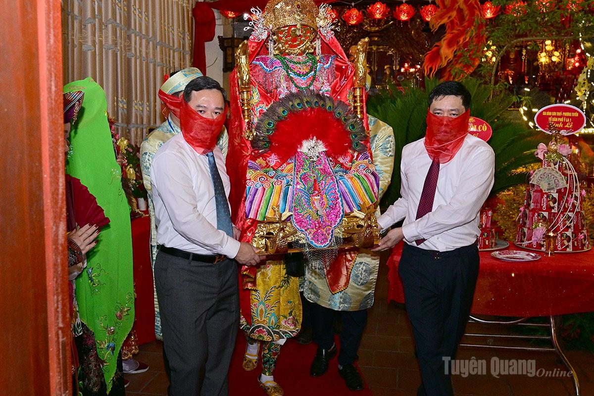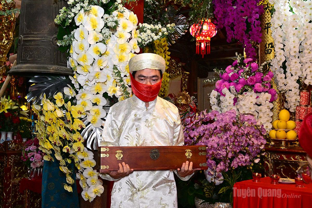 Lễ tế của lãnh đạo phường Minh Xuân trước khi rước Long Ngai Thánh Mẫu đền Ỷ La.