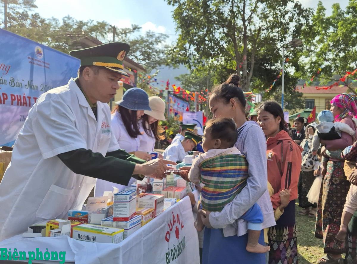 Cán bộ quân y Bộ đội Biên phòng tỉnh Quảng Trị cấp thuốc miễn phí cho đồng bào các dân tộc ở xã biên giới Thượng Trạch, tỉnh Quảng Trị. Ảnh: Ngọc Hòa