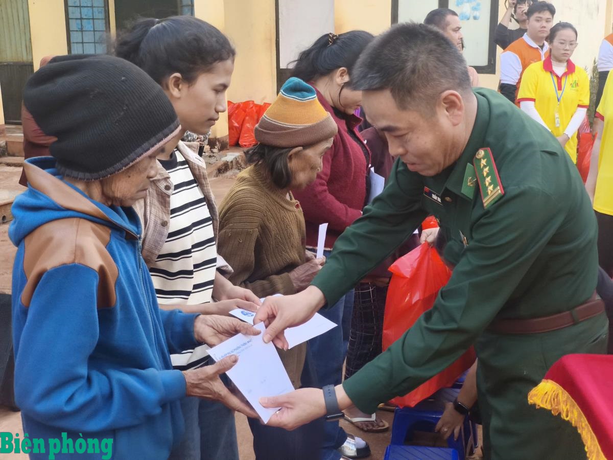Lãnh đạo Bộ đội Biên phòng tỉnh Gia Lai trao quà Tết cho đồng bào các dân tộc tại xã Ia Pnôn, tỉnh Gia Lai. Ảnh: Thanh Bình