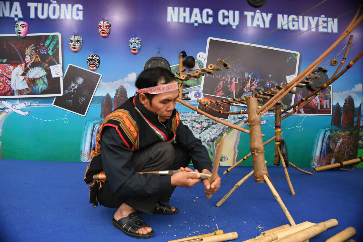 Đến với Ngày hội, công chúng, du khách có cơ hội trải nghiệm, xem nghệ nhân làm nhạc cụ truyền thống. Ảnh: Phạm Sỹ.